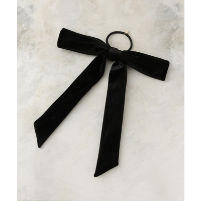 ベロアの光沢がリボンの立体感を際立たせ、顔まわりに上品で可愛らしい存在感を与えます。