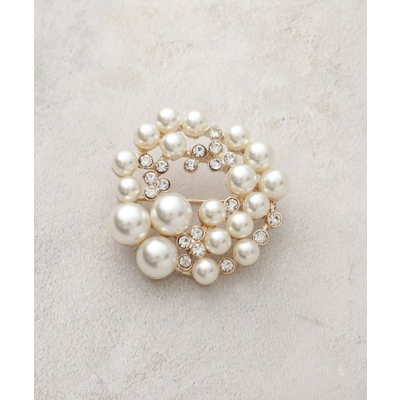 フェイクパールとビジューを合わせたブローチでコーディネートのアクセントに