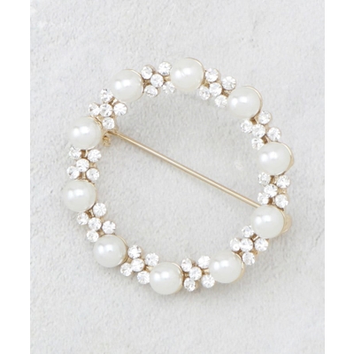 サークルフォルムにフェイクパールとビジューを配した小ぶりなワンポイントで、控えめな華やぎを添えます。