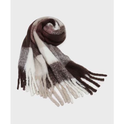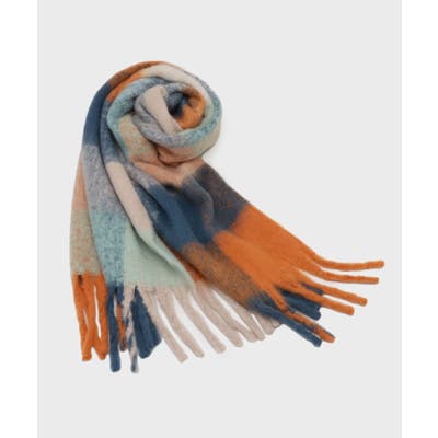 ふんわりと柔らかい風合いが特徴のチェック柄ストール。