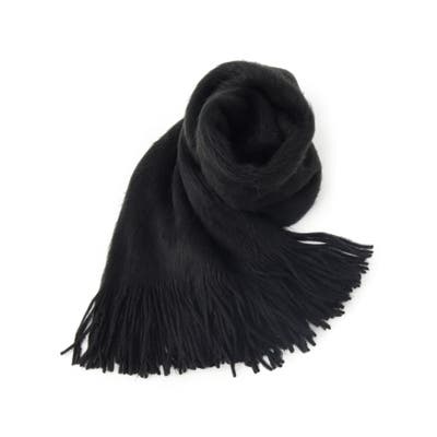 ふんわりと柔らかい風合いが特徴のラッセル織りフリンジマフラー。