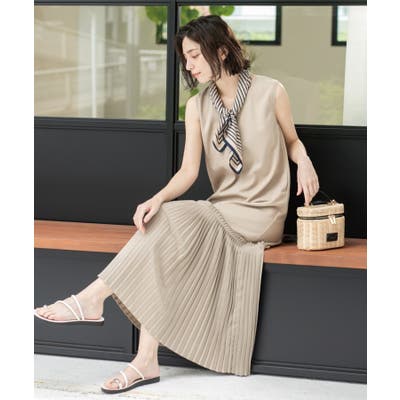 プリーツ切替ノースリーブワンピース【洗濯機洗い可】