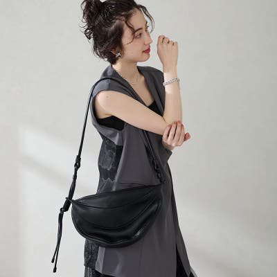 ハーフムーン型のシンプルなデザインでカジュアルからフェミニンまでスタイリングを選ばず使える万能バッグ。柔らかい素材感で使いやすく、ショルダーは結び目の位置を変えて長さの調節が可能。見た目以上に入るサイズ感は荷物が多い日にも大活躍。ベーシックなブラックとホワイトのカラー展開も魅力的。
