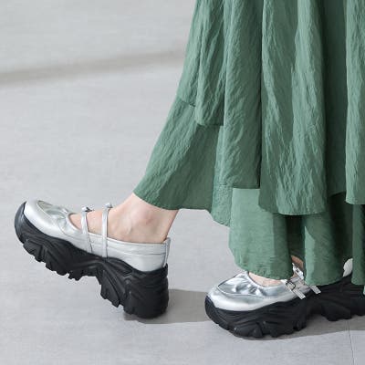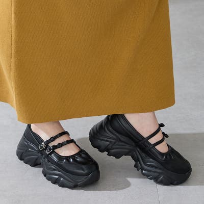 ストラップにさりげなく施したリボンデザインのガーリーさと、スニーカーソールの歩きやすさを両立した厚底シューズ。存在感がありながら華奢なストラップで甲まわりをすっきり見せてくれて、履き口のギャザーデザインが程よいアクセント。高低差が少ない弾力のあるソールでたくさん歩く日でも疲れにくいスポーツMIXな主役級の1足は、ソールをブラックに統一することでまとまりのある印象に。