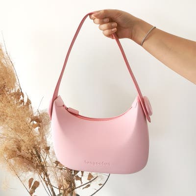 トレンドの半月型バッグは長財布や500mlのペットボトルも収まり、見た目以上の収納力。立体的な程よいスクエアフォルムが身体にフィットしやすく、持ち手ストラップは肩や腕に食い込みにくい幅広デザインなので持ちやすい。本体とストラップが全色バイカラーになっているので、コーディネートのアクセントとして取り入れるのもおすすめ。EVA素材を使用しているのでとても軽いうえに防水性と防汚性に優れており、デイリー使いにぴったり。肩掛けはもちろん、付属の長さ調整可能なストラップを取り付けるとショルダーバッグとしても使える2way仕様で、コーディネートに合わせてカスタムできるのが嬉しいポイント。
