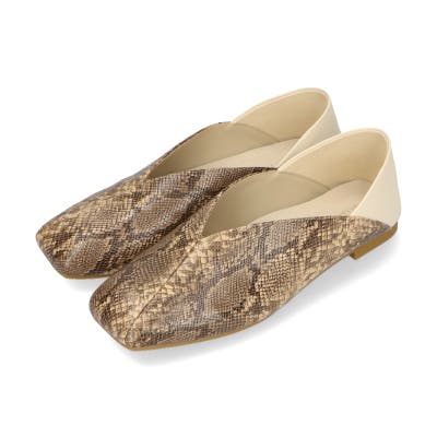 | 素材 | アッパー:ブラック/ベージュ→ヘビ柄型押し合皮×合成皮革、裏側:羊革×ナイロン生地、ソール:ゴム |
