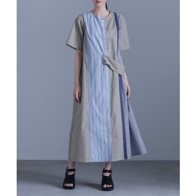 ■デザイン 二種類の異なるストライプ生地と無地の生地を切り替えたワンピース。左側に太めのベルトを付け、高級感とデザイン性をプラスしています。ベルトは取り外しが可能で、前を開けると羽織としても着用でき、気分に合わせて印象を変えることができます。 ■コーディネート 一枚で主役級のワンピースなので、着るだけでコーディネートがお洒落に決まるアイテム。ベルトを外して前を開けると、羽織としても着用いただくことができるので、一枚でコーデの幅が広がります。 ■素材 さらりとした肌触りで程良い厚みのシャツ生地を使用。コットン混で快適にご着用いただけます。 |