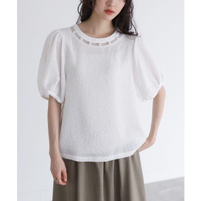 somari imaginationフェイクパール付きフラワージャカードブラウス