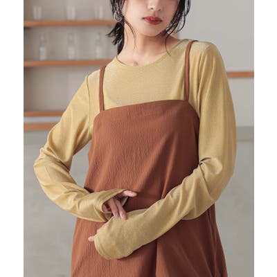 | ■デザイン 程よい透け感と繊細なラメがポイントのクルーネックトップス。長めの袖丈と指穴デザイン・絶妙なシルエットで、一枚でもレイヤードスタイルにも使える着回し抜群アイテムです。 ■素材 透けすぎないシアー感のあるラメ入りカットソー生地を使用。インにもアウトにも着やすい計算された程よい厚みで、ロングシーズンご着用いただけます。 肌刺激につきまして こちらの商品は、 お肌に刺激を感じる場合がございます。 ご了承の上、ご購入いただきますようお願いいたします。 ■コーディネート コーデに取り入れるだけで、スタイリングのアクセントとして使える一枚。透け感があるので一枚で着てインナーで遊んだり、キャミやサロペ・カーデのインにもおすすめです。シンプルなボトムスに合わせるだけでラメが引き立ち、お洒落印象なコーデが完成します。 |