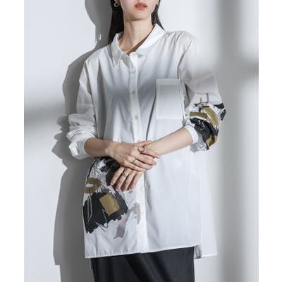 ■デザイン オリジナルのアート柄プリントを施したシャツ。前後で向きの異なるプリントと、袖の片方のみにプリントしたデザインで印象的な一着に仕立てました。長めの丈と前後の着丈差で、抜け感のある着こなしに。 ■コーディネート 長めの着丈で、シャツだけどラフに着られるデザイン。デザイン性のあるシャツなので、プリントが引き立つシンプルなボトムスと合わせていただくだけでお洒落なスタイルが完成します。前開けで羽織りとしてのコーディネートもおすすめ。 ■素材 程よい厚みのポリエステルコットンシャツ生地を使用。さらっとした肌触りでご着用いただけます。 オフホワイトのみ少し透け感がございます。 ■製品についての注意書き プリントは永久的なものではなく、揉まれたり擦られたりすると脱落しやすくなります。 水洗いやクリーニングを繰り返す事により多少色合い等が薄くなります。 プリント部分には直接アイロンをあてないでください。 ご了承の上、ご購入いただきますようお願いいたします。 |