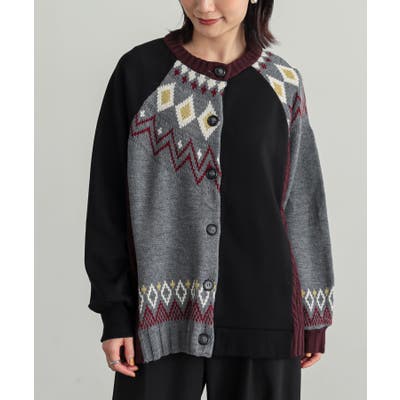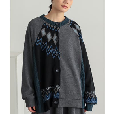 n'OrLABEL裏シャギーパッチワークノルディックニットカーデ
