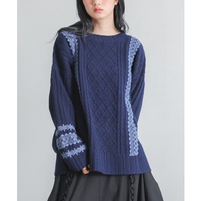 somari imaginationレースデザインモヘヤタッチケーブルニット