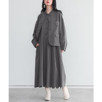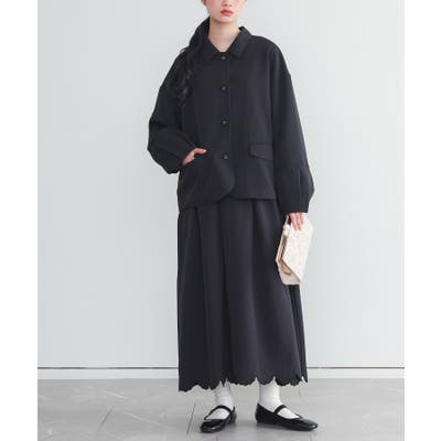■デザイン ふっくらとしたランタンスリーブが特徴のジャケットと、裾に華やかなスカラップ刺繍をあしらったセットアップ。ジャケットは、丸みのあるポケットや裾の角が柔らかな印象を与えます。ワンピースのシャツ襟が、ジャケットの襟元から覗くことで、顔周りをすっきりと見せるアクセントになります。ワンピースは、ウエストの高い位置で切り替え、タックを入れたフレアスカートのシルエットで動くたびにふわりと広がる優美なラインが、女性らしさを引き立てます。それぞれ単品でも着回ししやすいのが魅力です。 ■コーディネート セットアップで着用すれば、セレモニーやパーティーなどのフォーマルなシーンにふさわしい上品な装いが完成します。ワンピース一枚でも着用できるため、カーディガンや別のジャケットと合わせれば、オフィスやちょっとしたお出かけにも活躍。ジャケットはパンツやタイトスカートと合わせて、甘さを抑えたコーディネートも楽しめます。 |