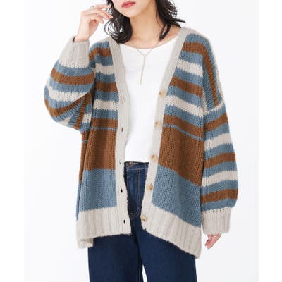 n'OrLABELミックスボーダー柄ニットカーディガン