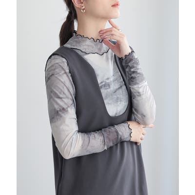 n'OrLABELニュアンス柄ハイネックメッシュカットソー