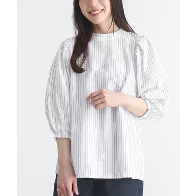 n'OrLABELストライプ柄ボリューム袖ブラウス