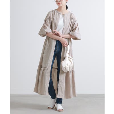 ■デザイン 裾のティアード切り替えがポイントになった、マルチストライプ柄のシャツワンピース。袖の後ろを長めにしてギャザーを入れたぽわん袖が、大人っぽくこなれた印象に導きます。便利な両サイドポケットも嬉しい仕様◎ ■素材 さらりとした肌触りの、着心地の良い布帛生地。程よい厚みでロングシーズンお洒落を楽しめます。 ※やや透け感がございますので、インナーのご着用をおすすめします。 ■コーディネート 一枚でワンピースとして着て、ティアードシルエットが引き立つお洒落が完成。ボタンを外して羽織としてさらっと着てもコーデの幅が広がります。 |