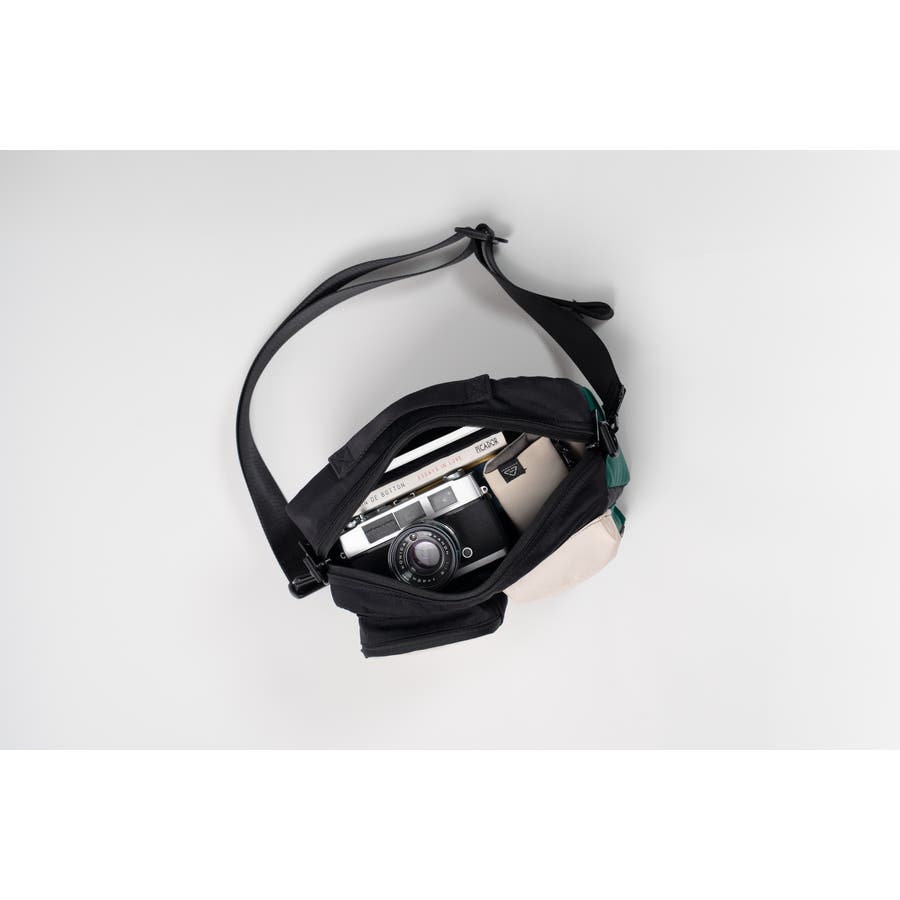 耐摩耗性・撥水性に優れた素材を使用し、デイリーユースでも安心。調節可能なショルダーストラップで、肩掛けや斜め掛けなど自由にアレンジ可能。
