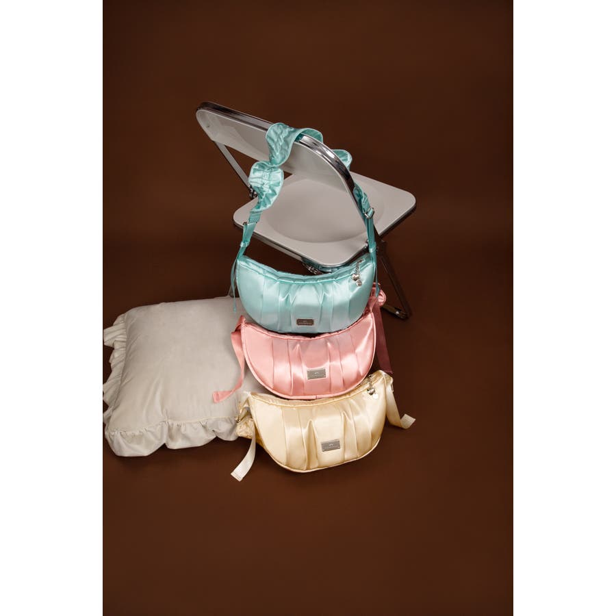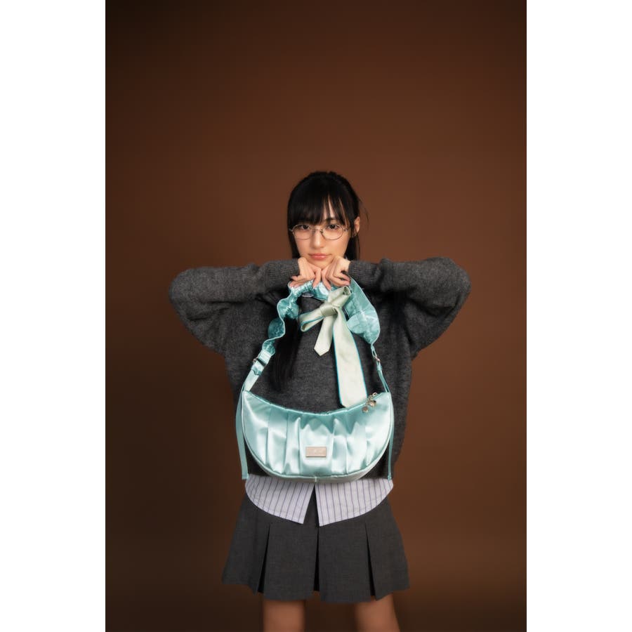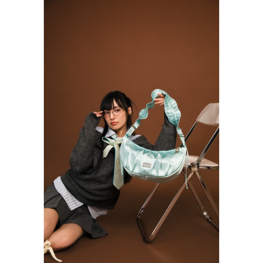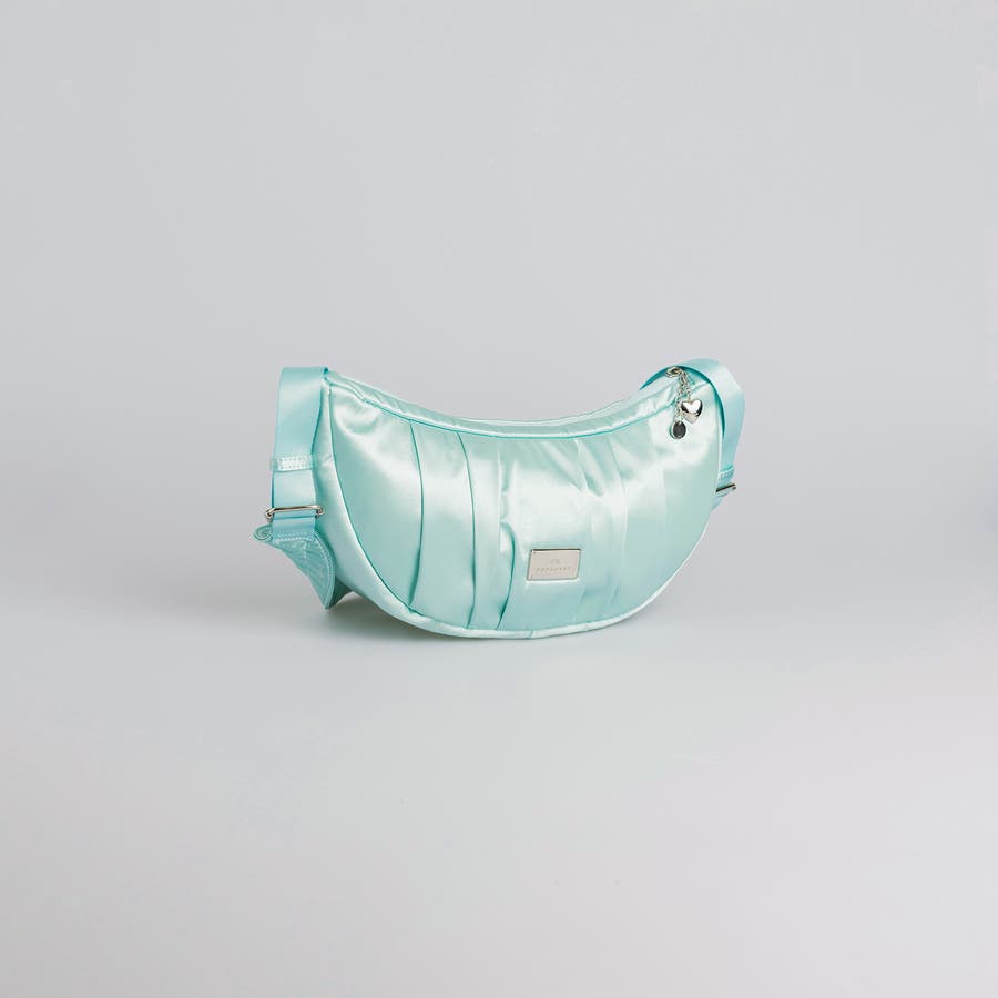 まるで夢のようなツヤ感がコーディネートに洗練された印象をプラスします。やわらかなドレープが美しいハーフムーンシルエットは、甘さと上品さを兼ね備え、スタイルのアクセントに。