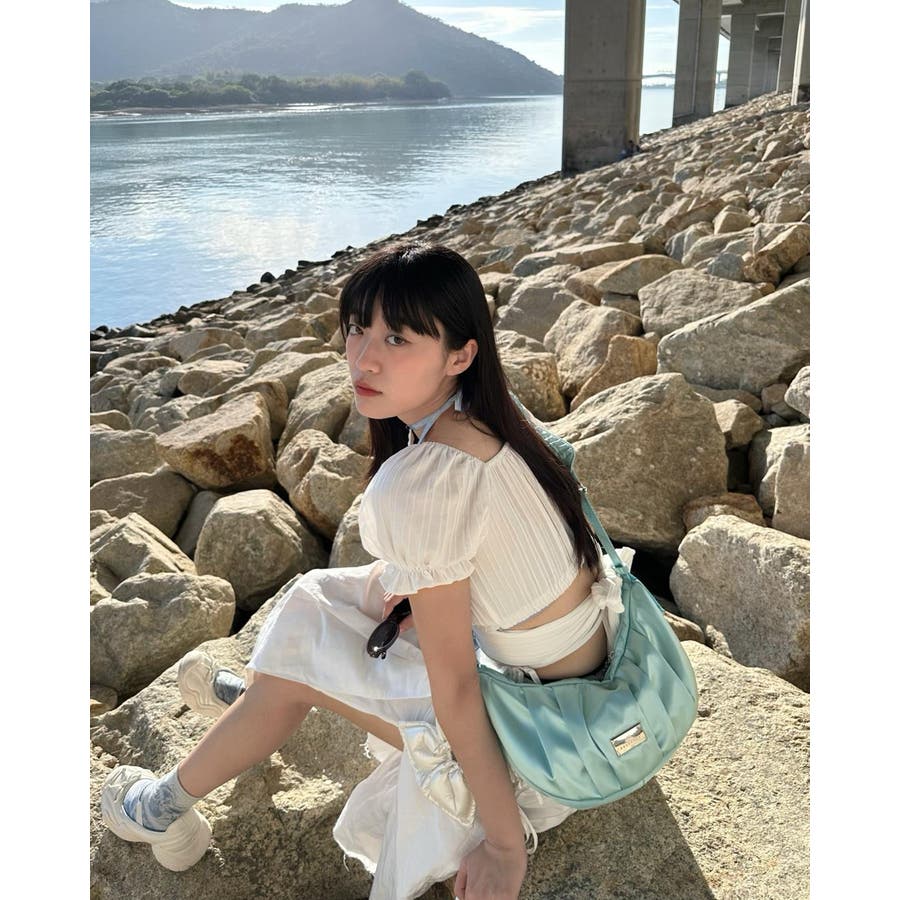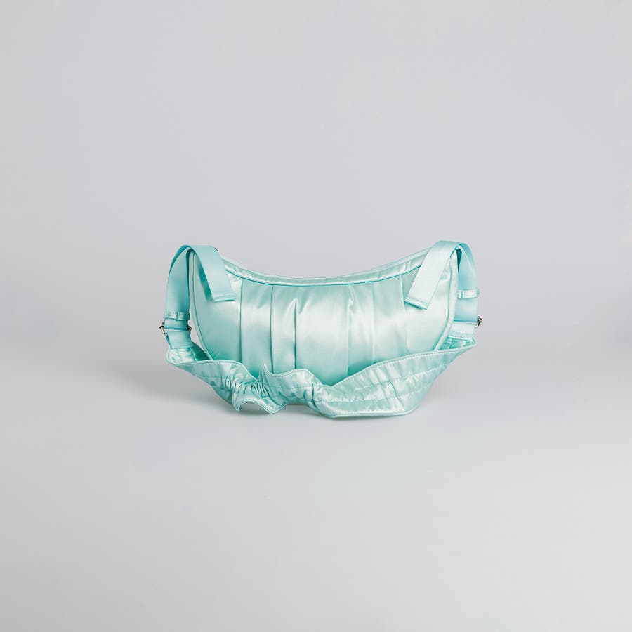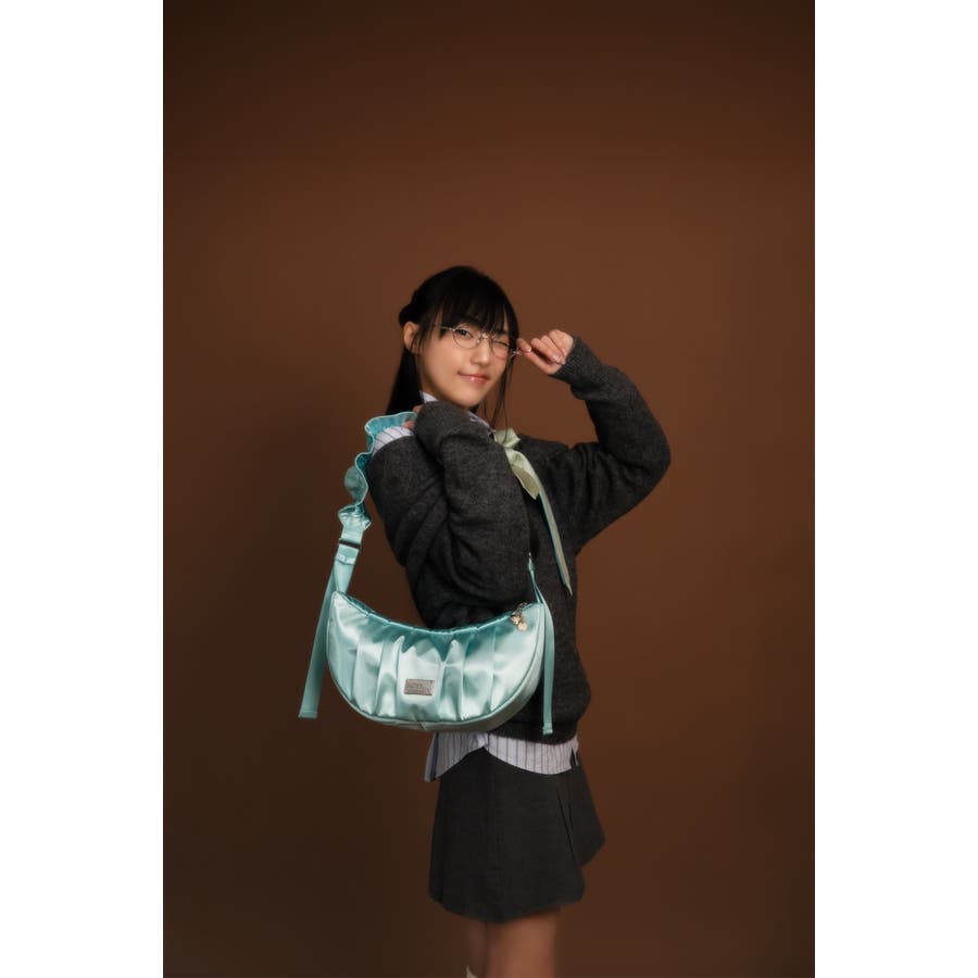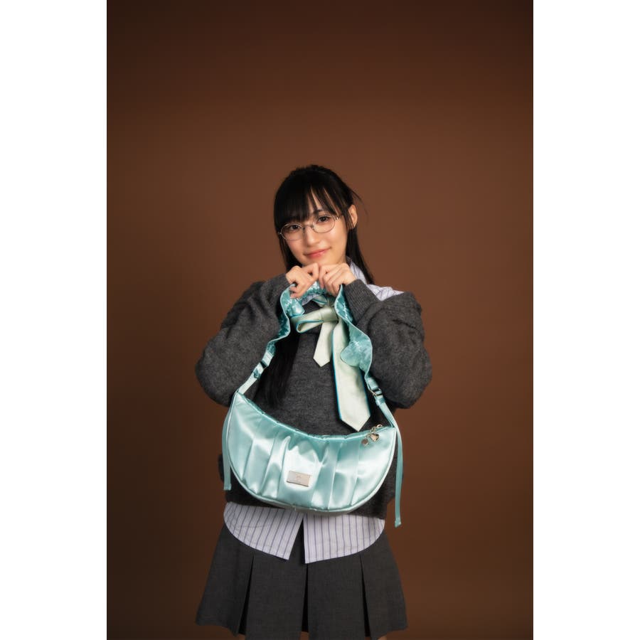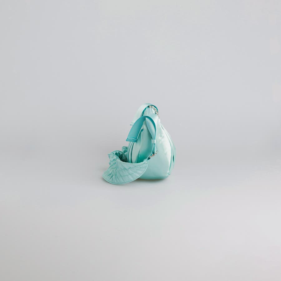 まるで夢のようなツヤ感がコーディネートに洗練された印象をプラスします。やわらかなドレープが美しいハーフムーンシルエットは、甘さと上品さを兼ね備え、スタイルのアクセントに。