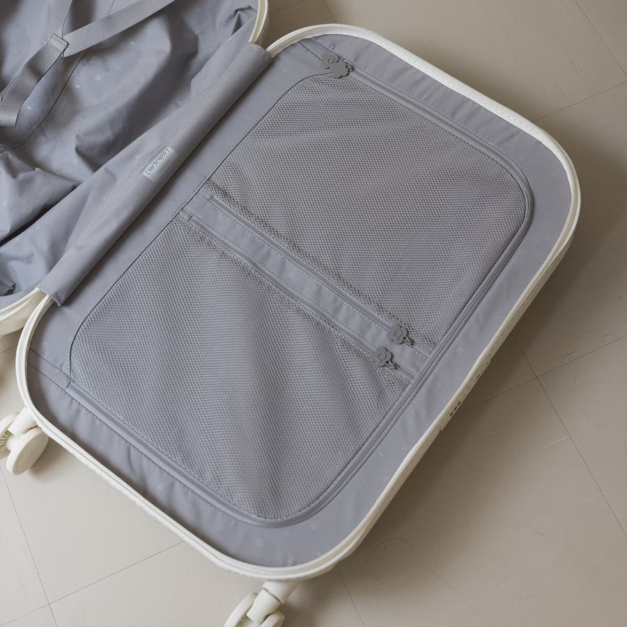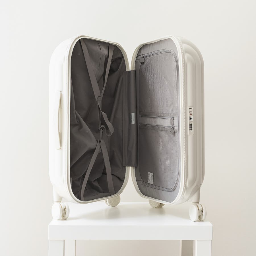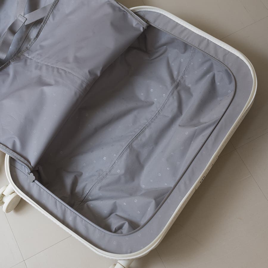ボディにはドイツ・バイエル社製ポリカーボネート素材を使用。軽くて丈夫、さらにマット加工を施し、キズや汚れにも強く、長く綺麗な状態を保ちます。内装には柔らかなピーチスキンライニングを使用し、衣類や小物を優しく保護。内部は全ファスナー仕切りとクロスバンドを組み合わせた設計で、荷物をスッキリ整頓。静音性に優れたSJ.TOBOL製の360度回転キャスターにより、スムーズかつ静かに移動できます。