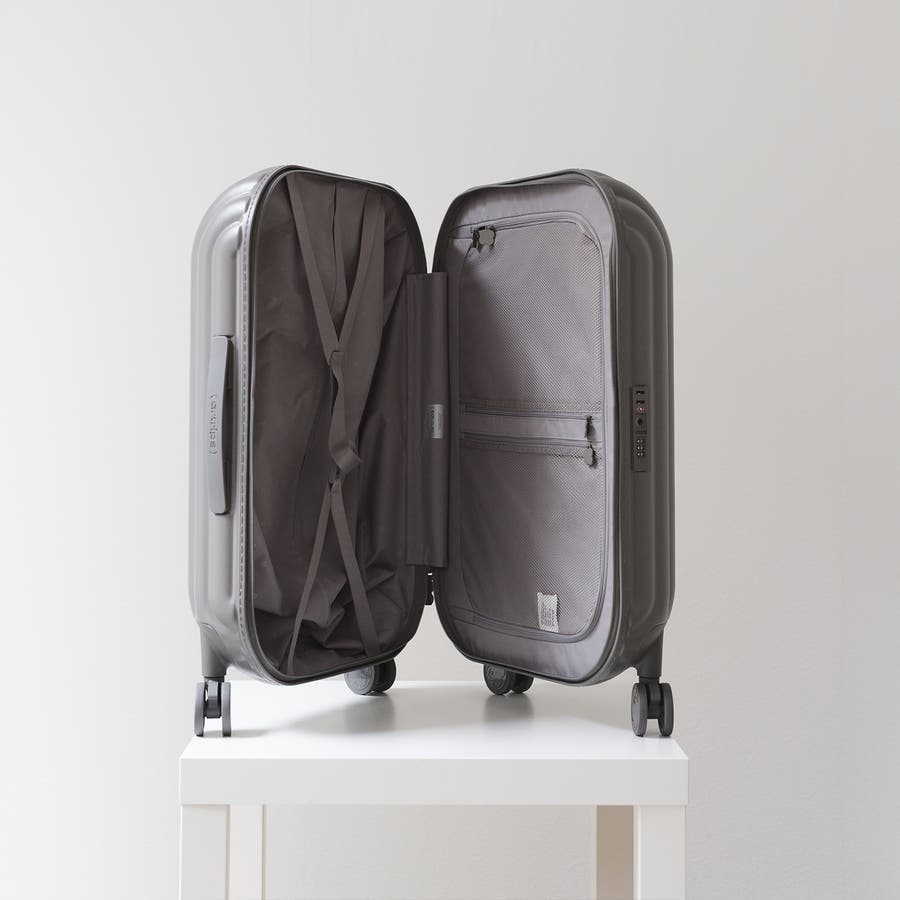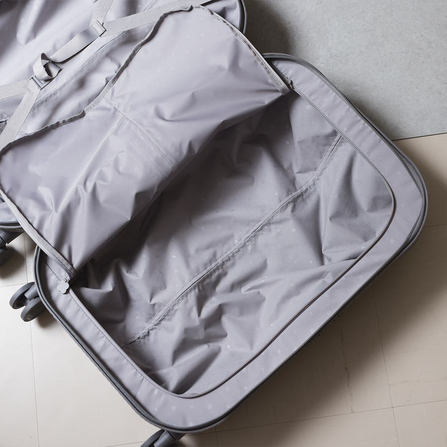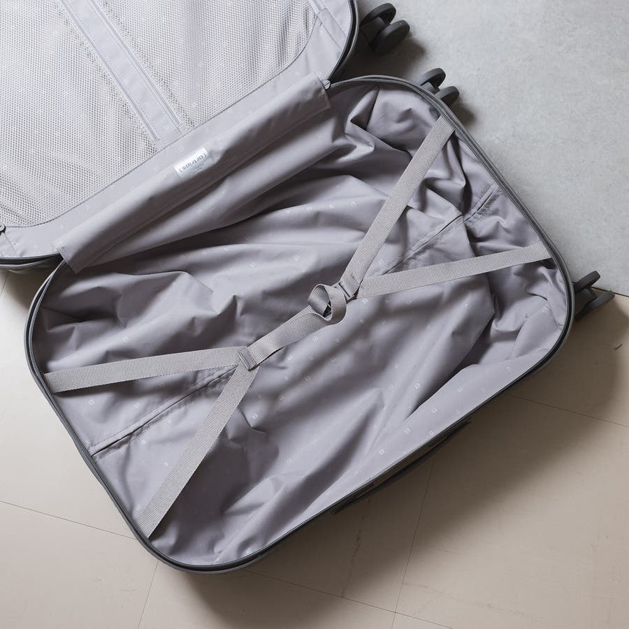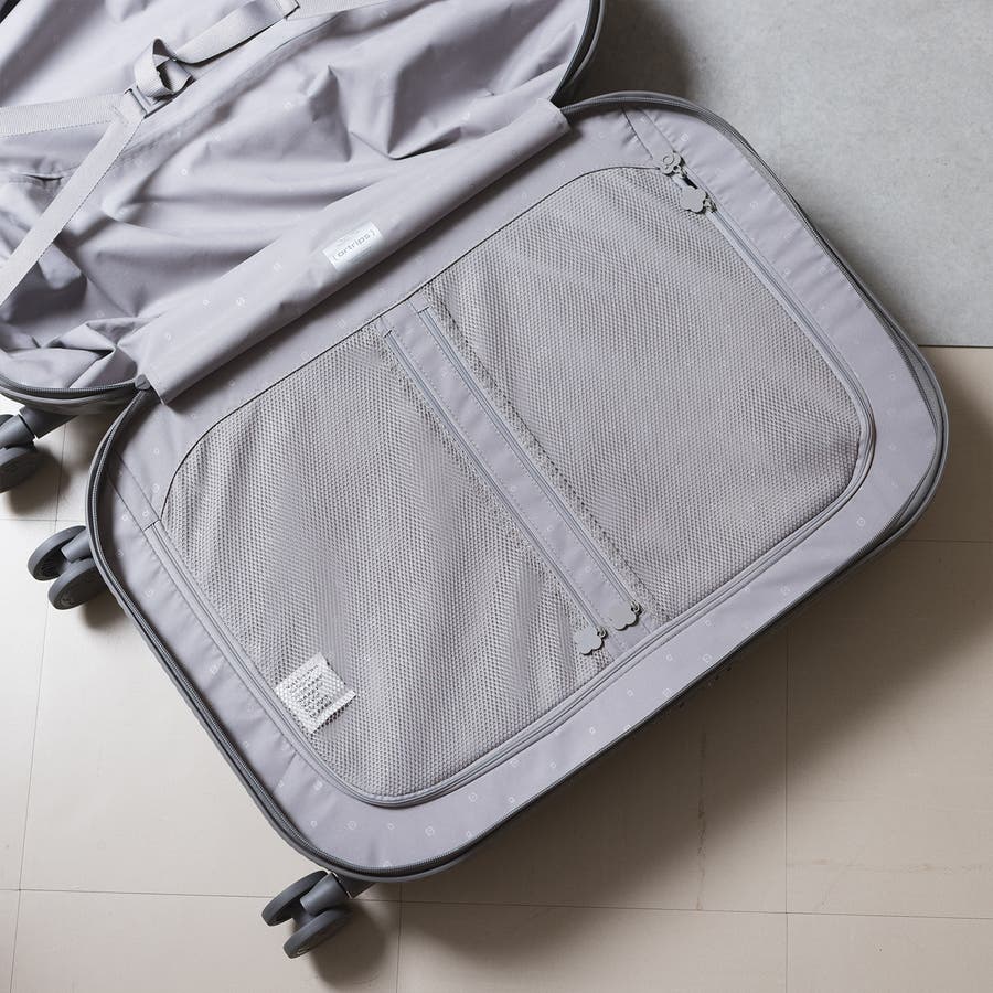 ボディにはドイツ・バイエル社製ポリカーボネート素材を使用。軽くて丈夫、さらにマット加工を施し、キズや汚れにも強く、長く綺麗な状態を保ちます。内装には柔らかなピーチスキンライニングを使用し、衣類や小物を優しく保護。内部は全ファスナー仕切りとクロスバンドを組み合わせた設計で、荷物をスッキリ整頓。静音性に優れたSJ.TOBOL製の360度回転キャスターにより、スムーズかつ静かに移動できます。