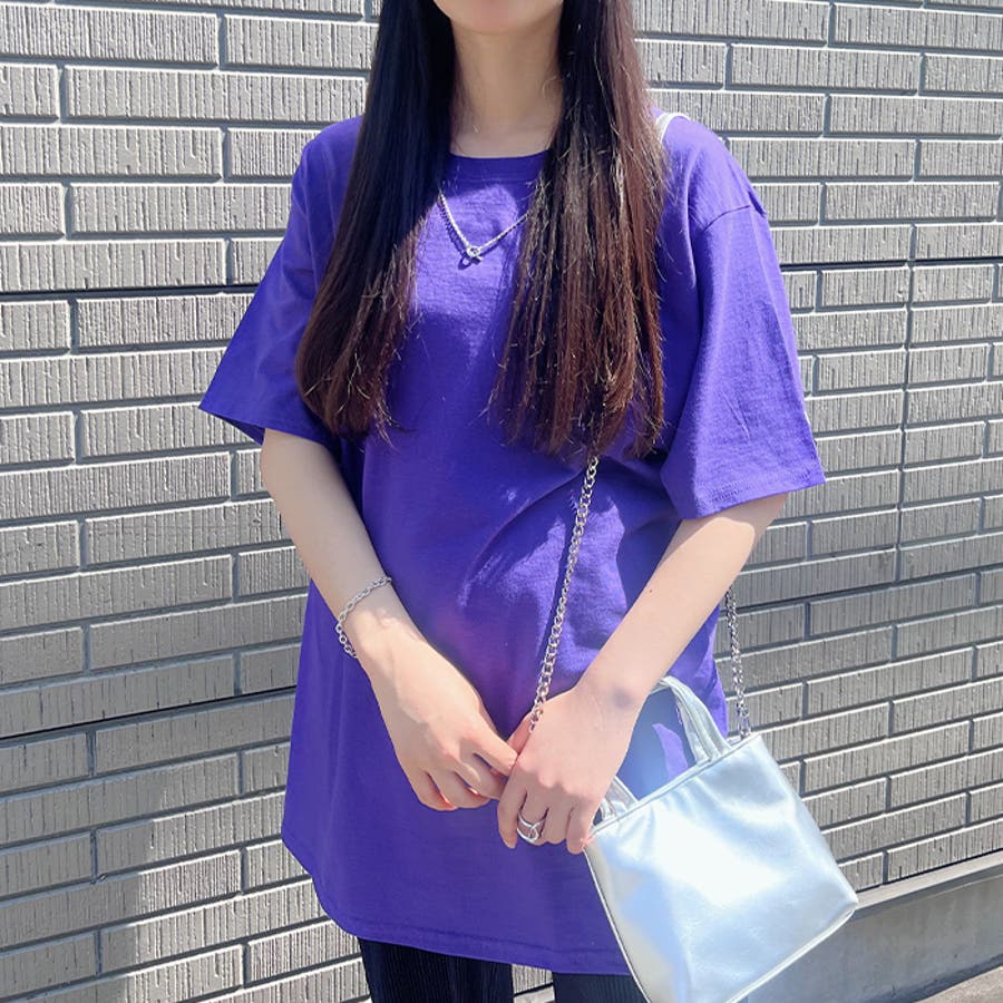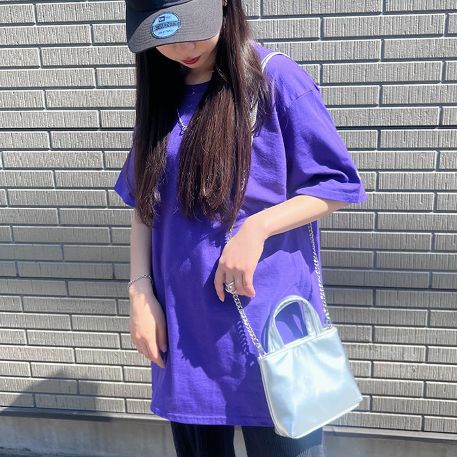 オーバーサイズでメンズっぽさの高まるビッグTシルエットなので、ストリート感の強いボトムスに厚底スニーカーなどを合わせるのがおすすめ。