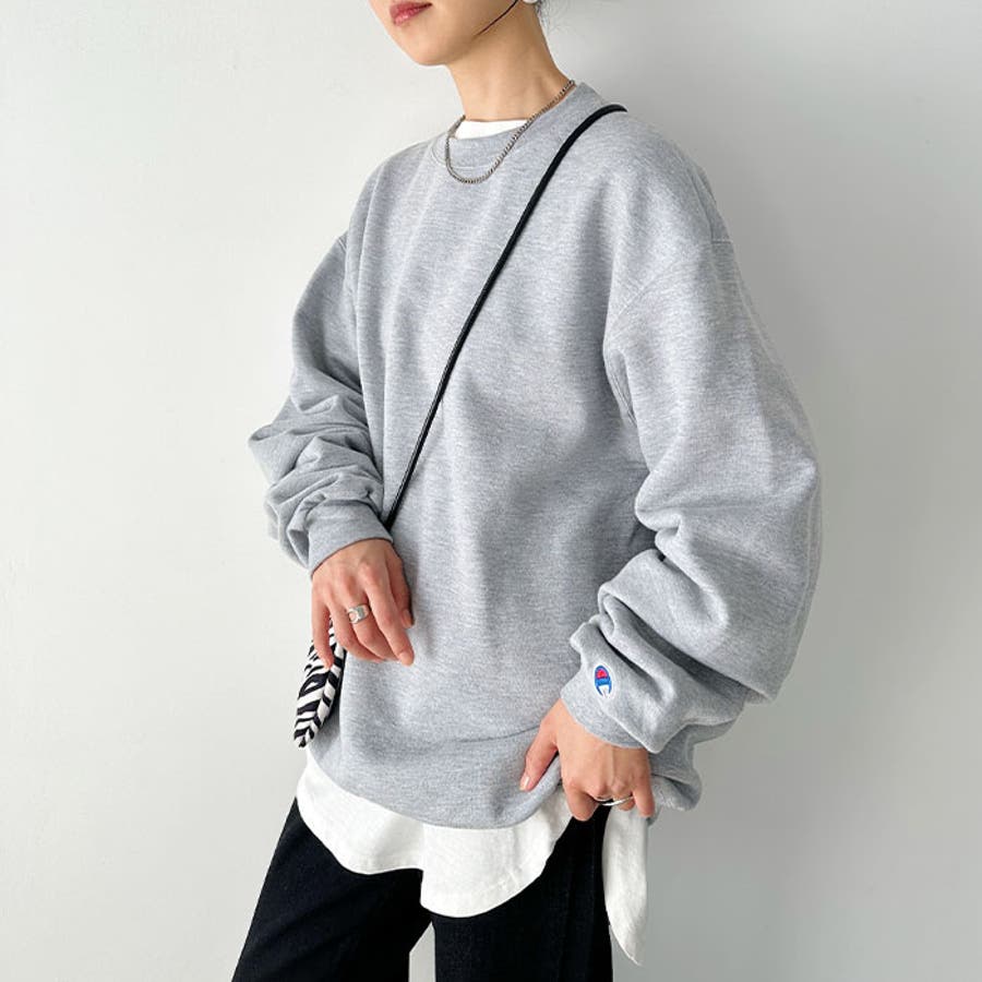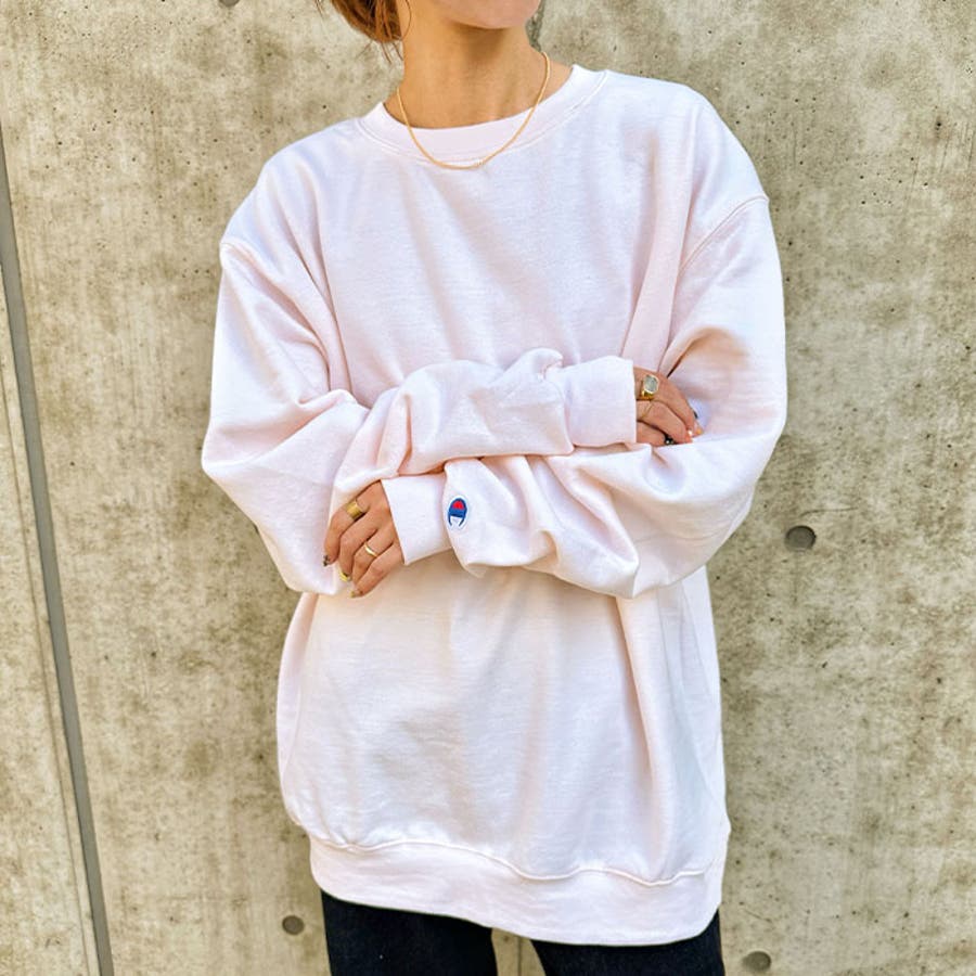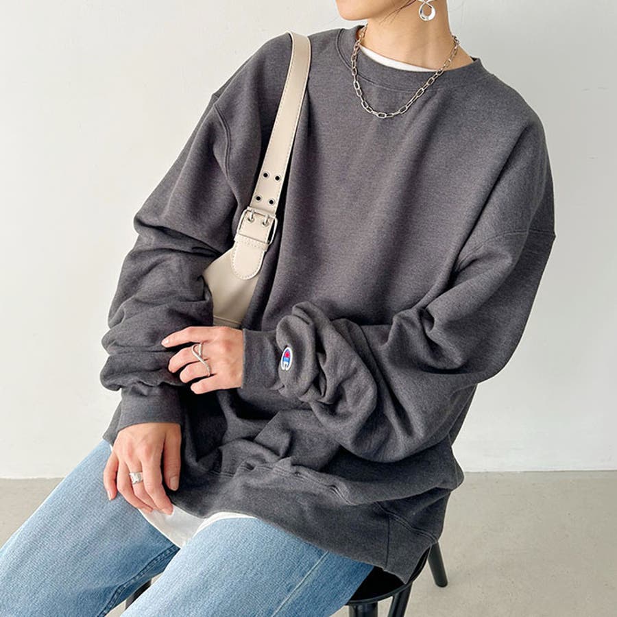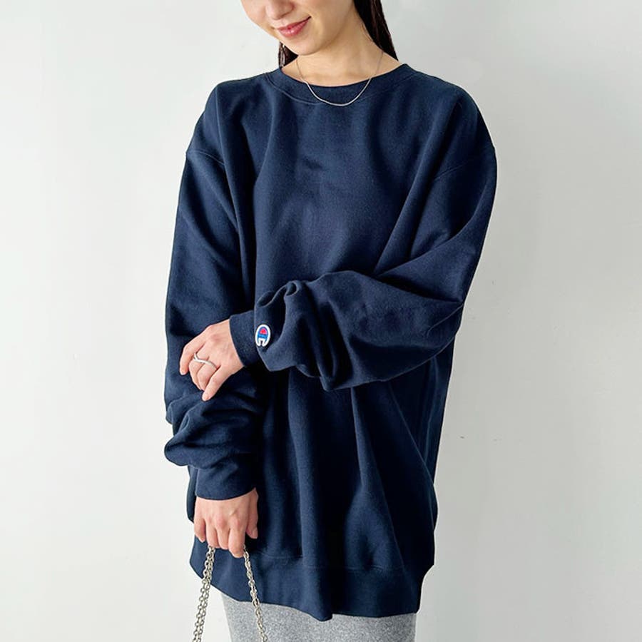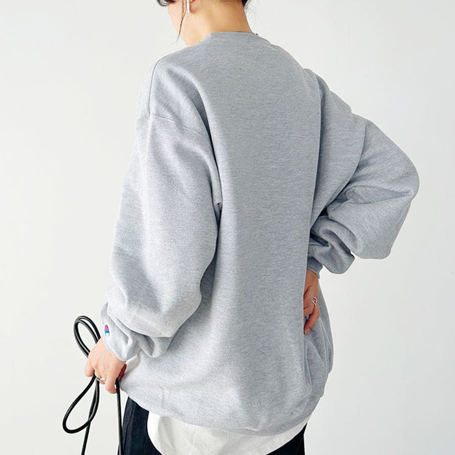 定番の袖刺繍ロゴワッペンがポイントのオーバーサイズのプルオーバートレーナー。