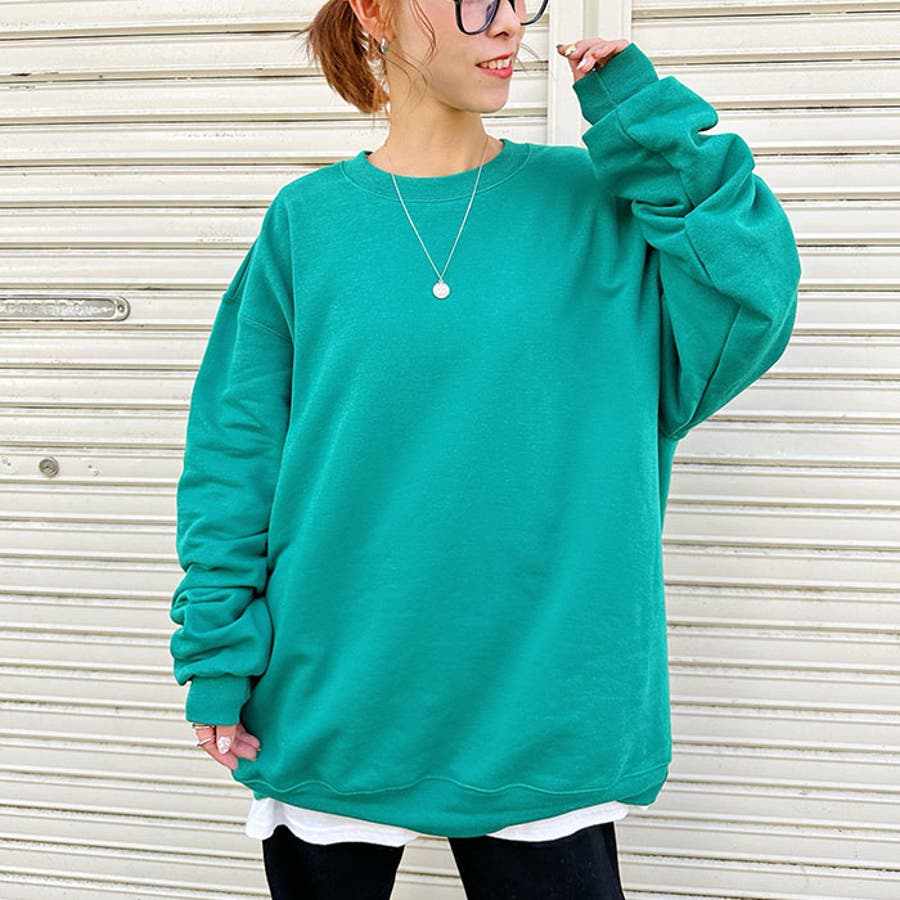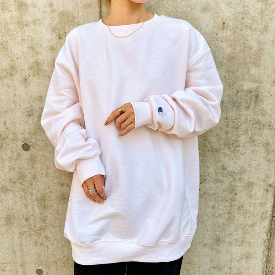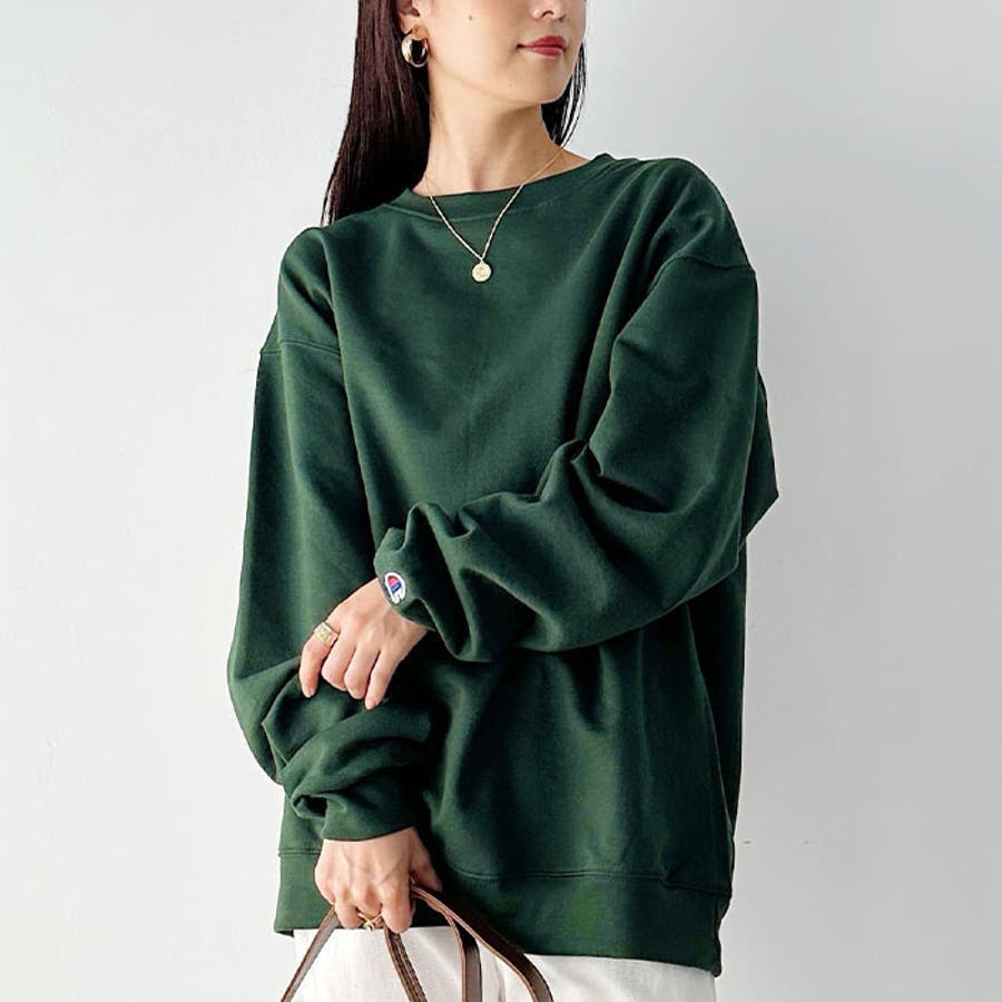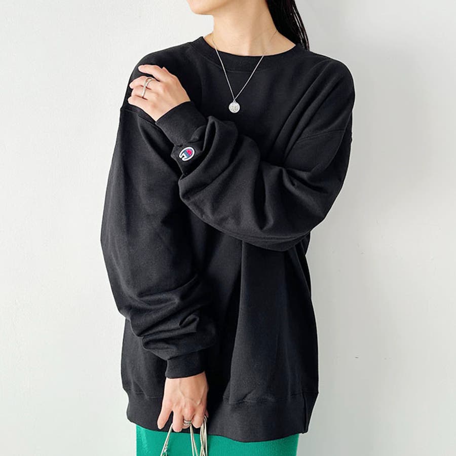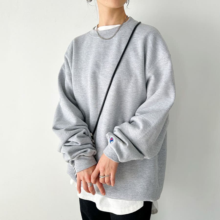 定番の袖刺繍ロゴワッペンがポイントのオーバーサイズのプルオーバートレーナー。