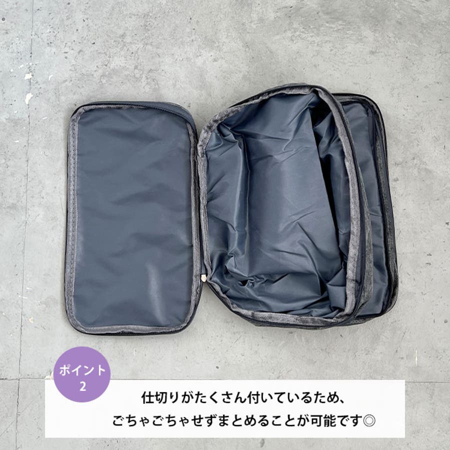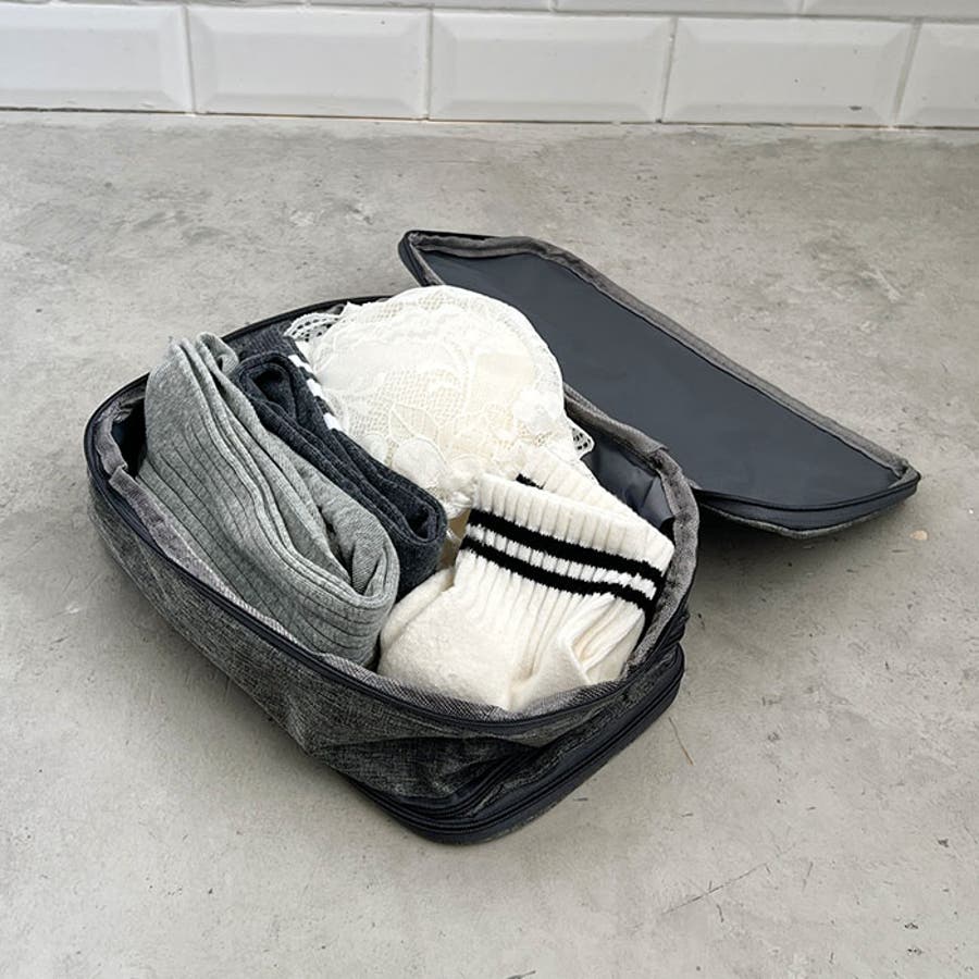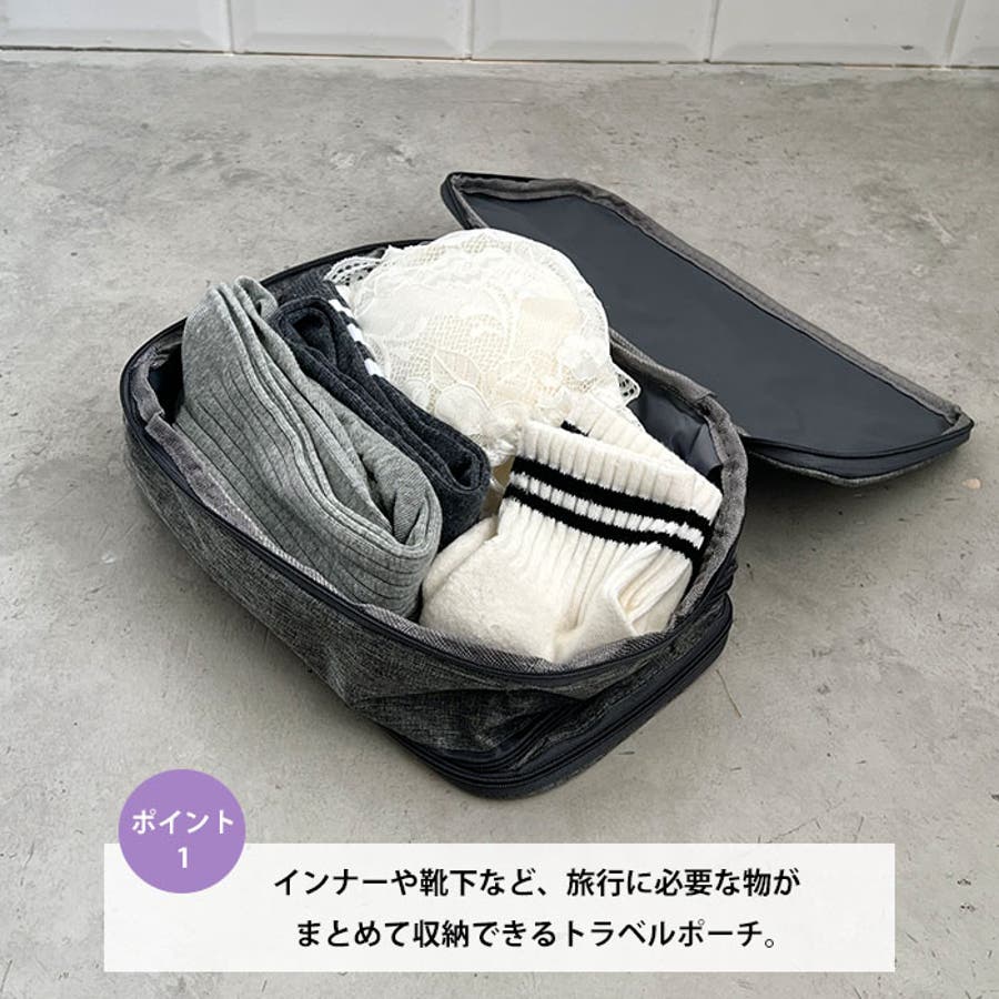 インナーや靴下など、旅行に必要な物がまとめて収納できるトラベルポーチ。