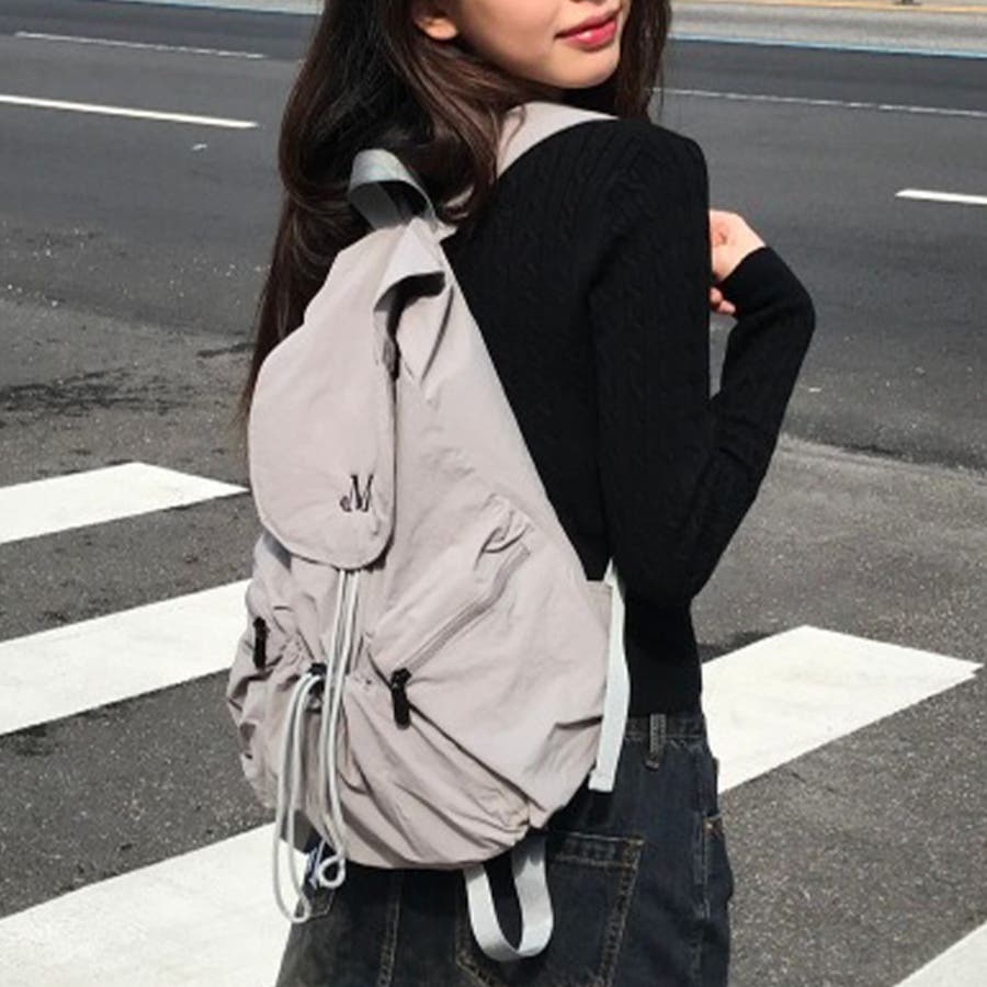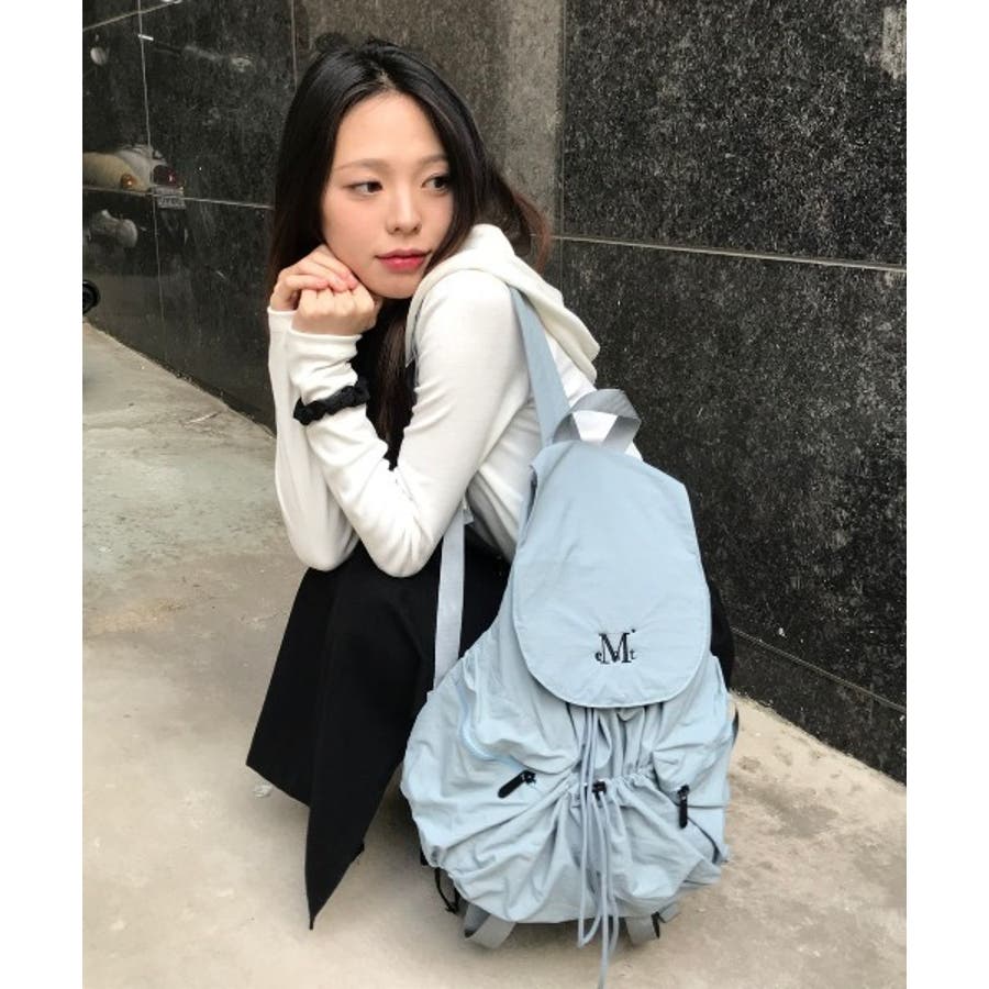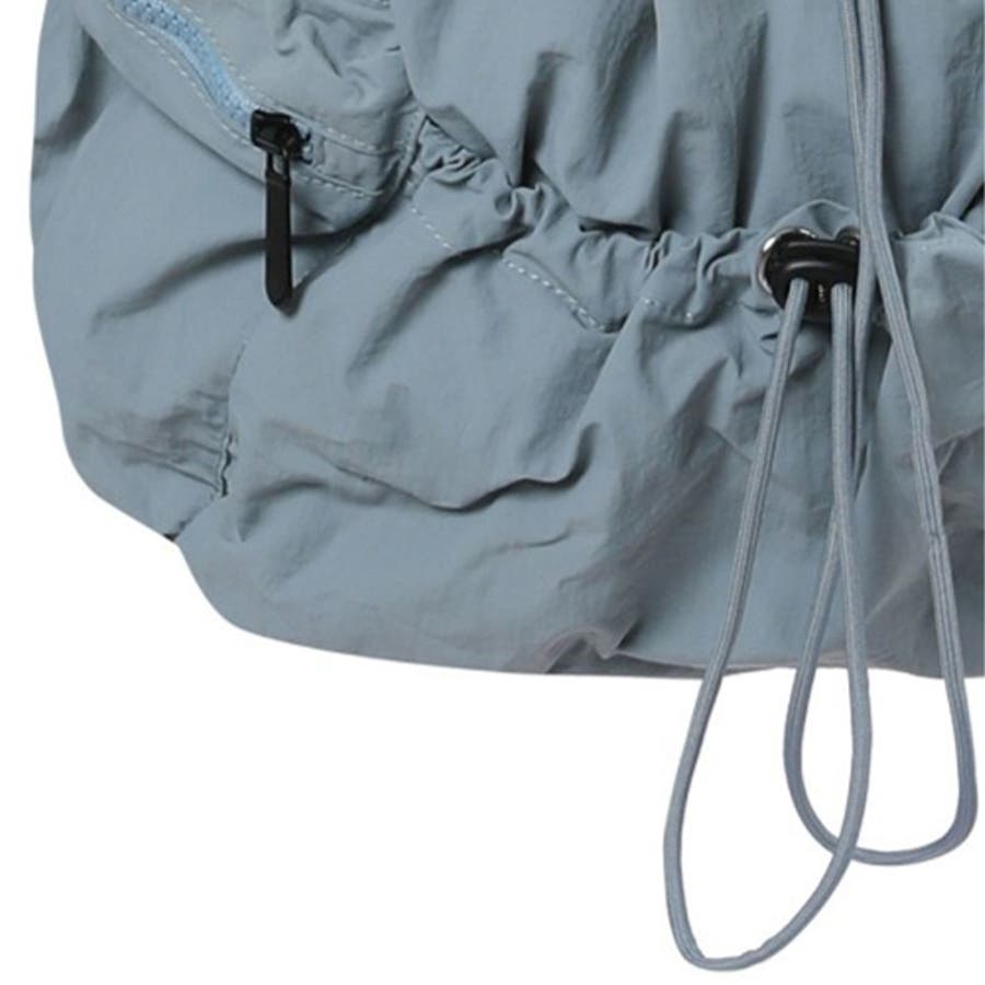 ドローストリングのギャザーがポイントのナップサック。