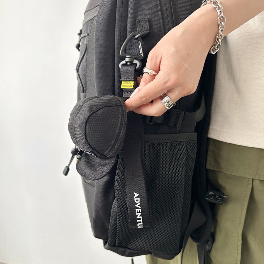 500mlのペットボトルが入るサイドメッシュポケット付き。