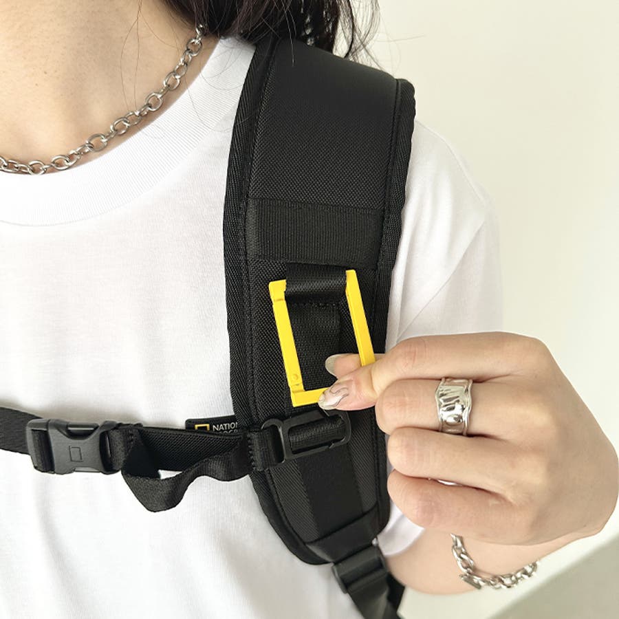 揺れを抑えてくれるチェストベルトで安定したフィット感を提供。