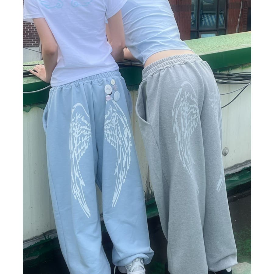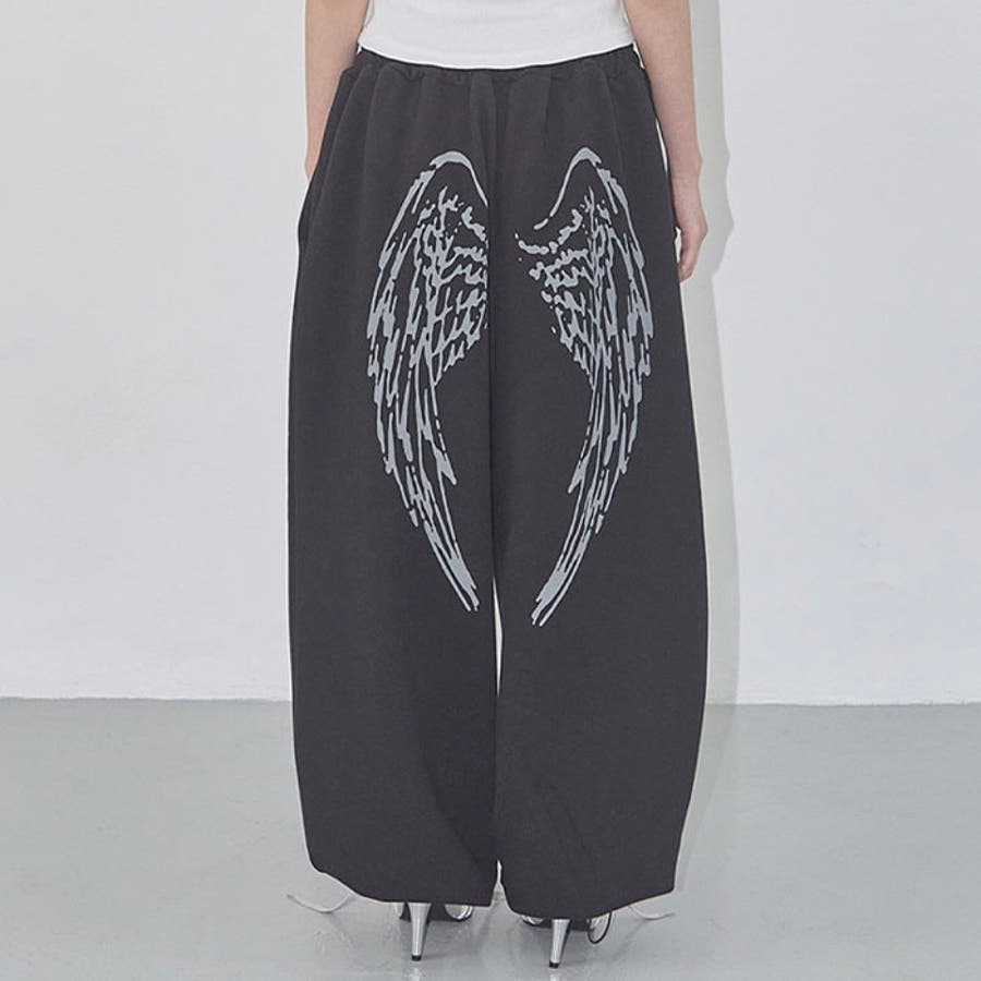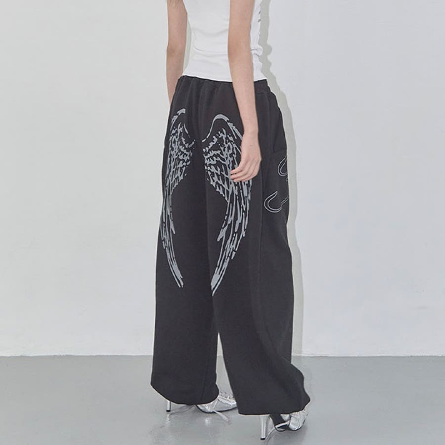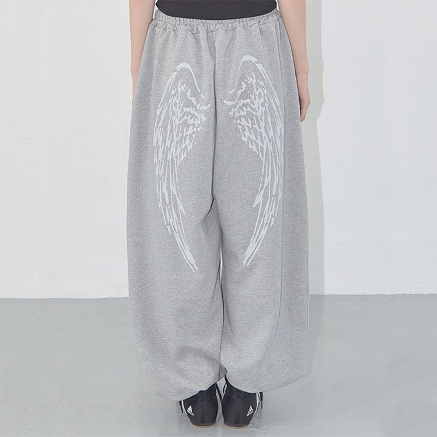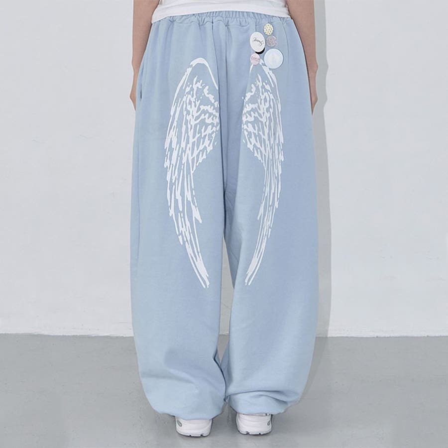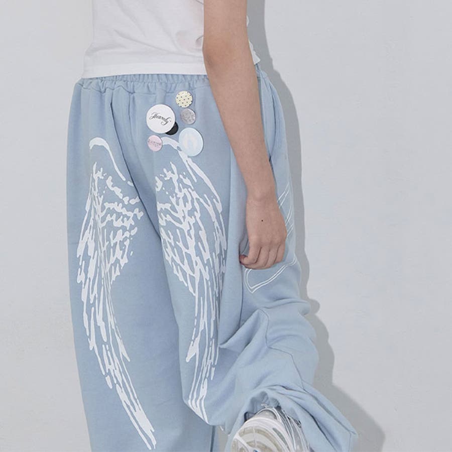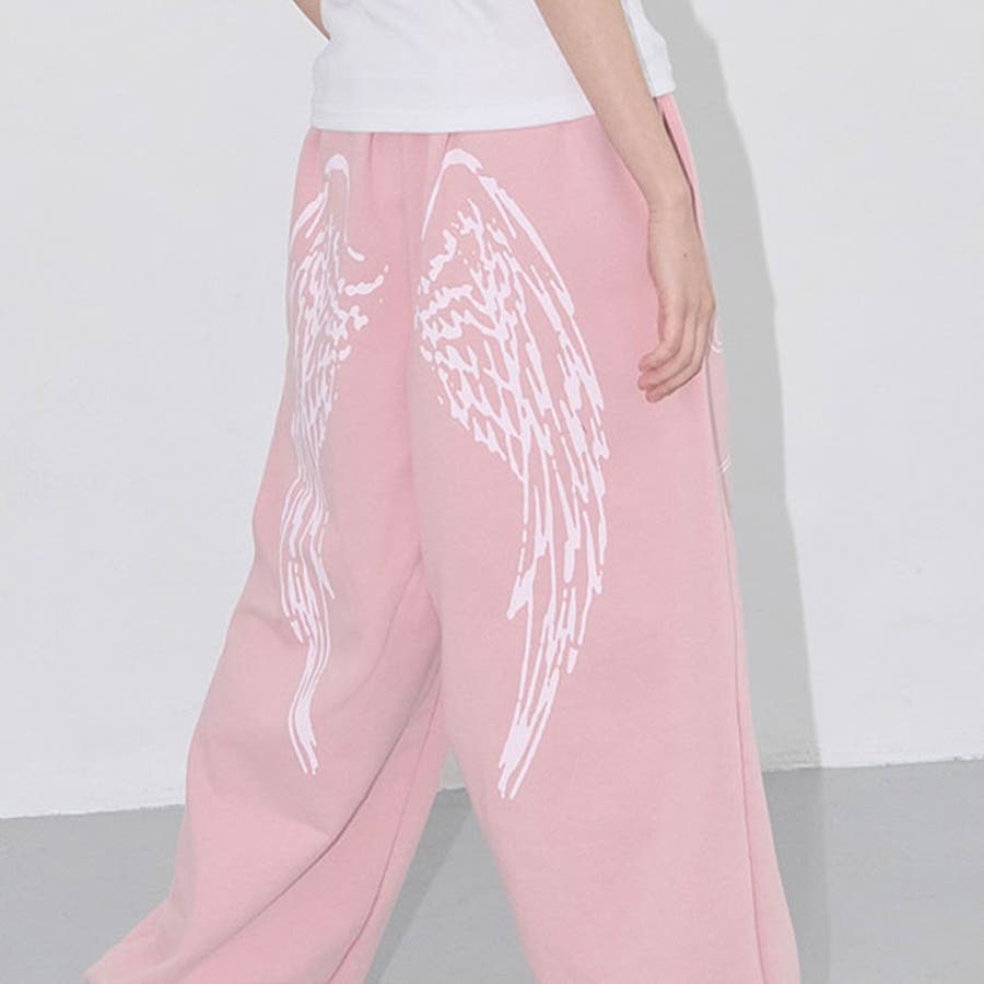 エンジェルのグラフィックプリントがポイントのスウェットジョガーパンツ。
