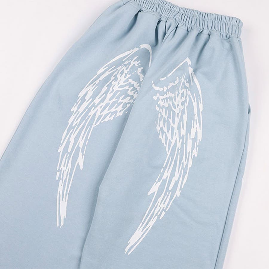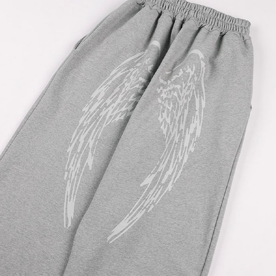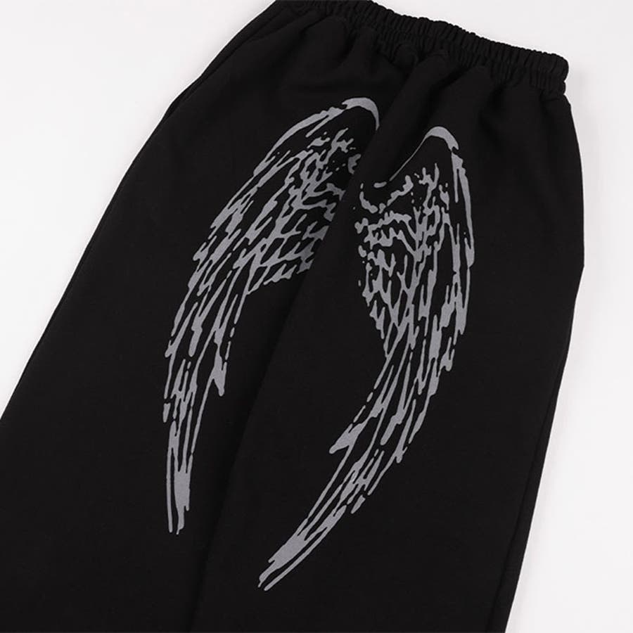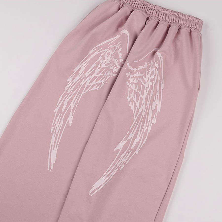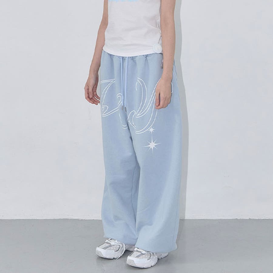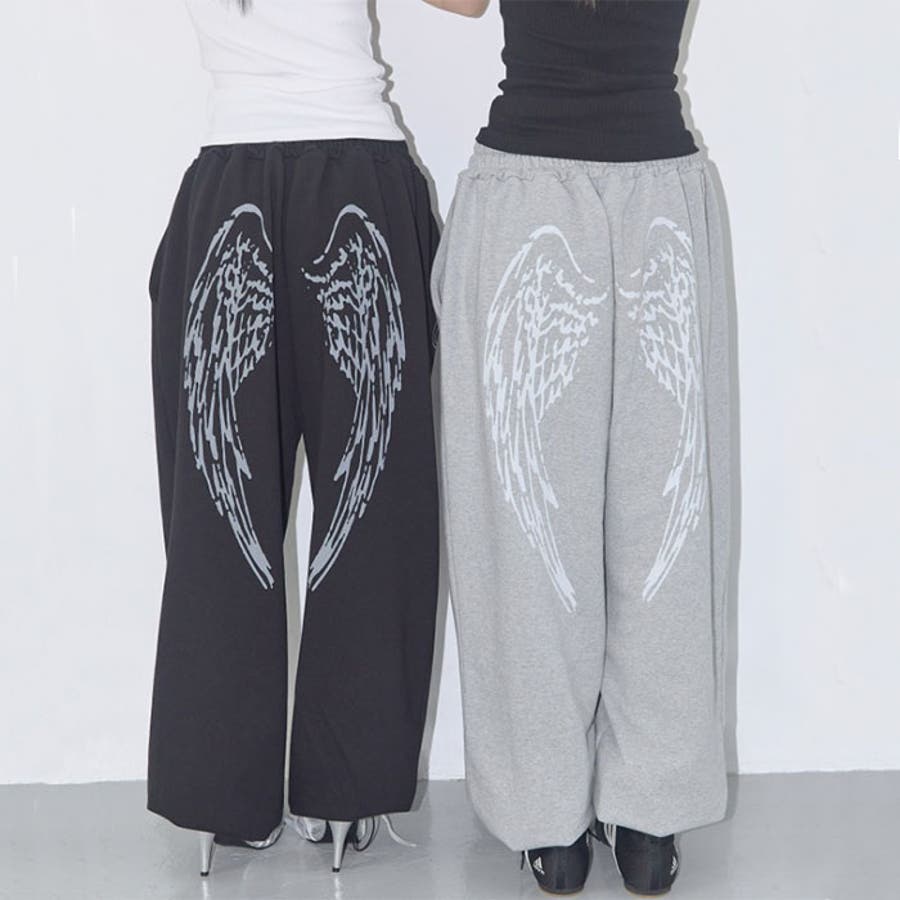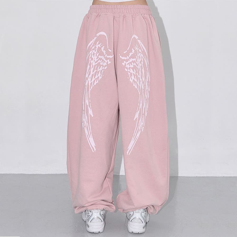 エンジェルのグラフィックプリントがポイントのスウェットジョガーパンツ。