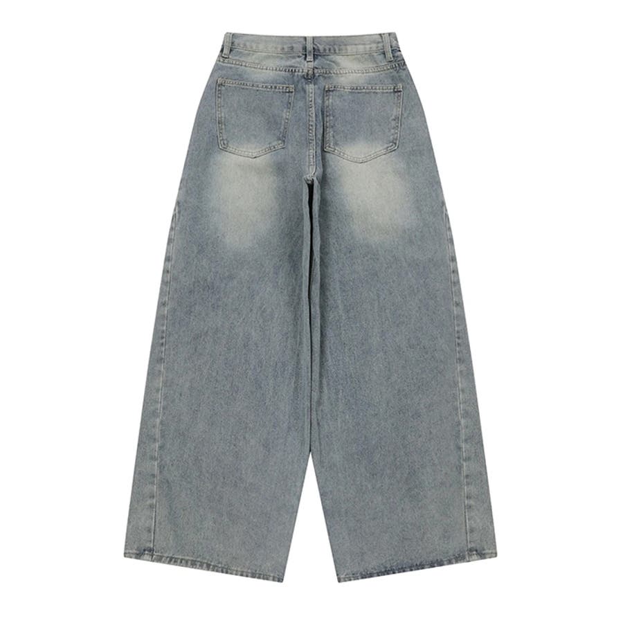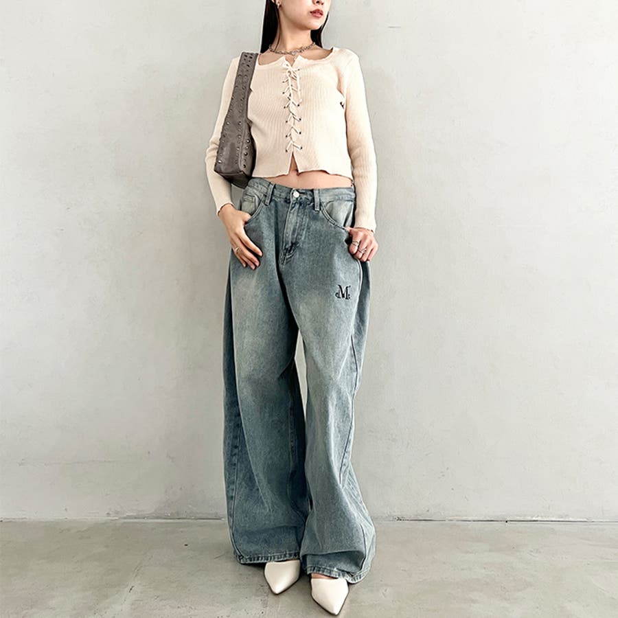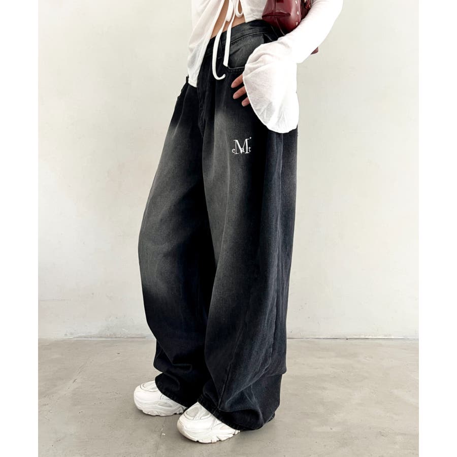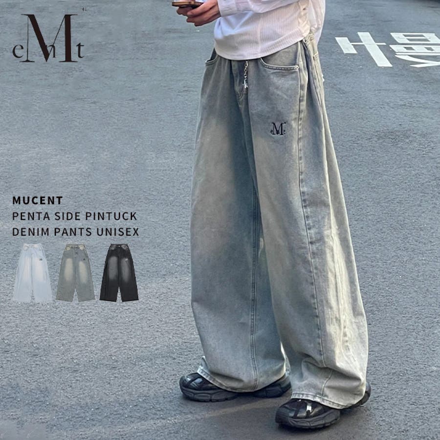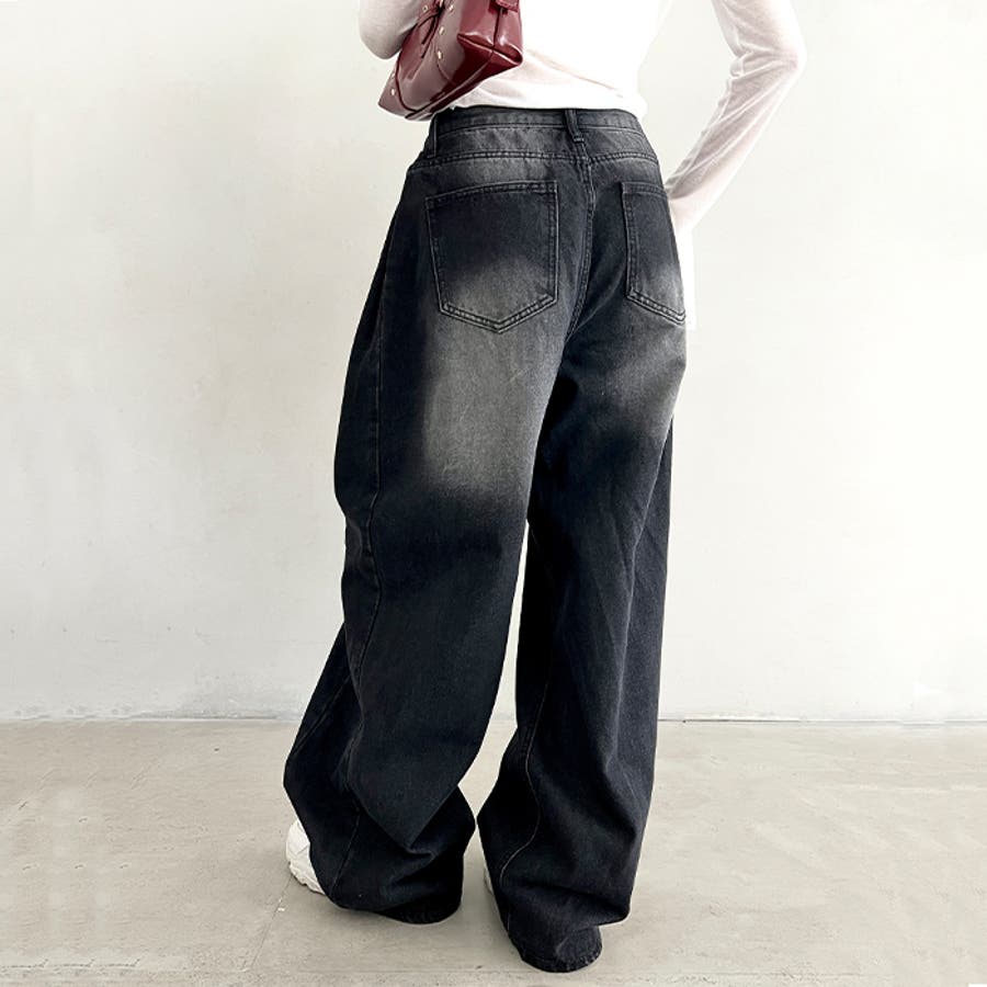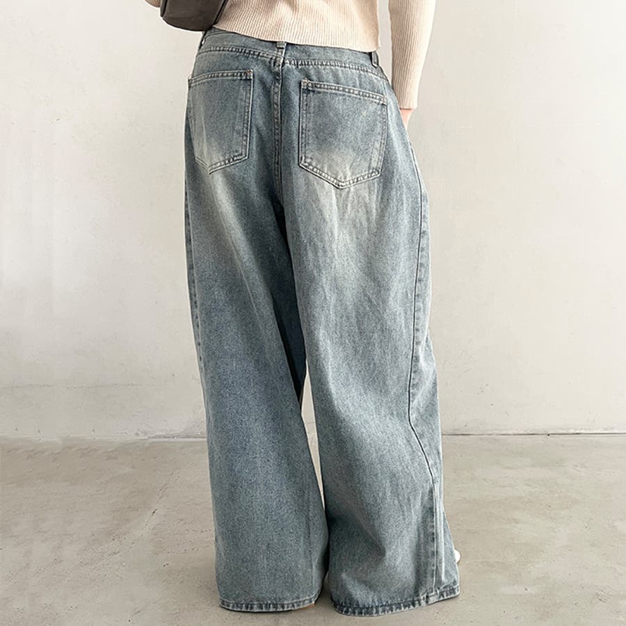 ワイドなシルエットとピンタックデザインが目を惹くデニムパンツです。