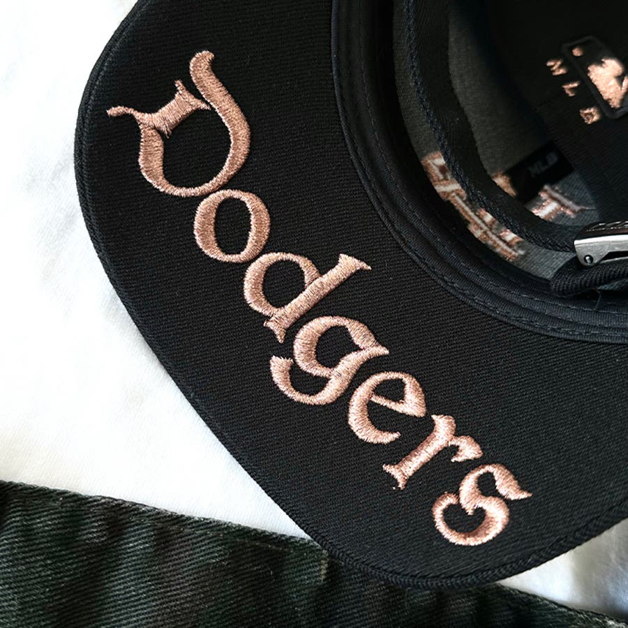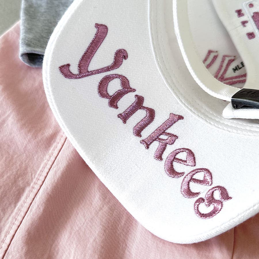 フロント中央と、ツバの裏側にメジャーリーグのチームロゴ刺繍、左側面とバックのアジャスター部分にはチームロゴワッペンを施したデザイン性の高いキャップです。