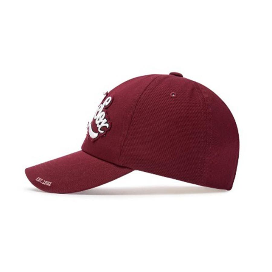 広めのツバとトレンドのダメージ入りヴィンテージ刺繍ロゴがPOINT!