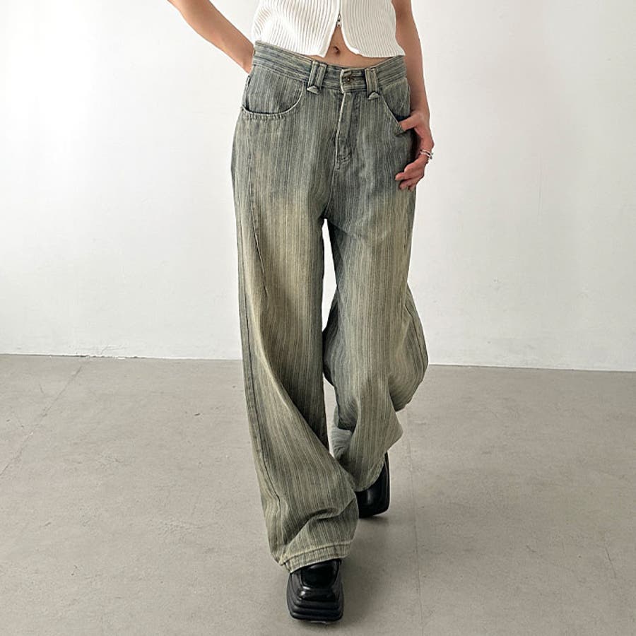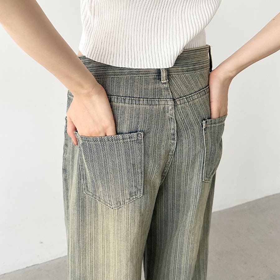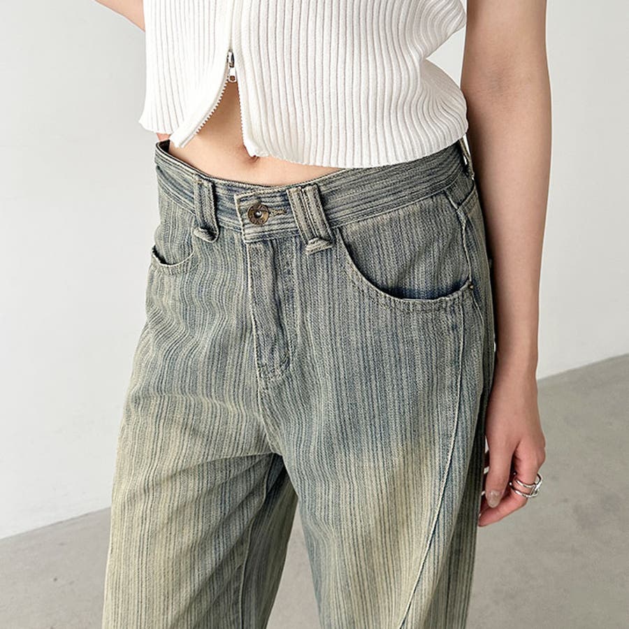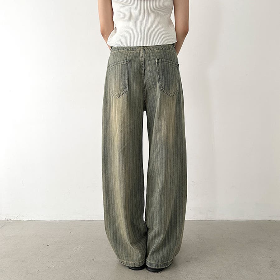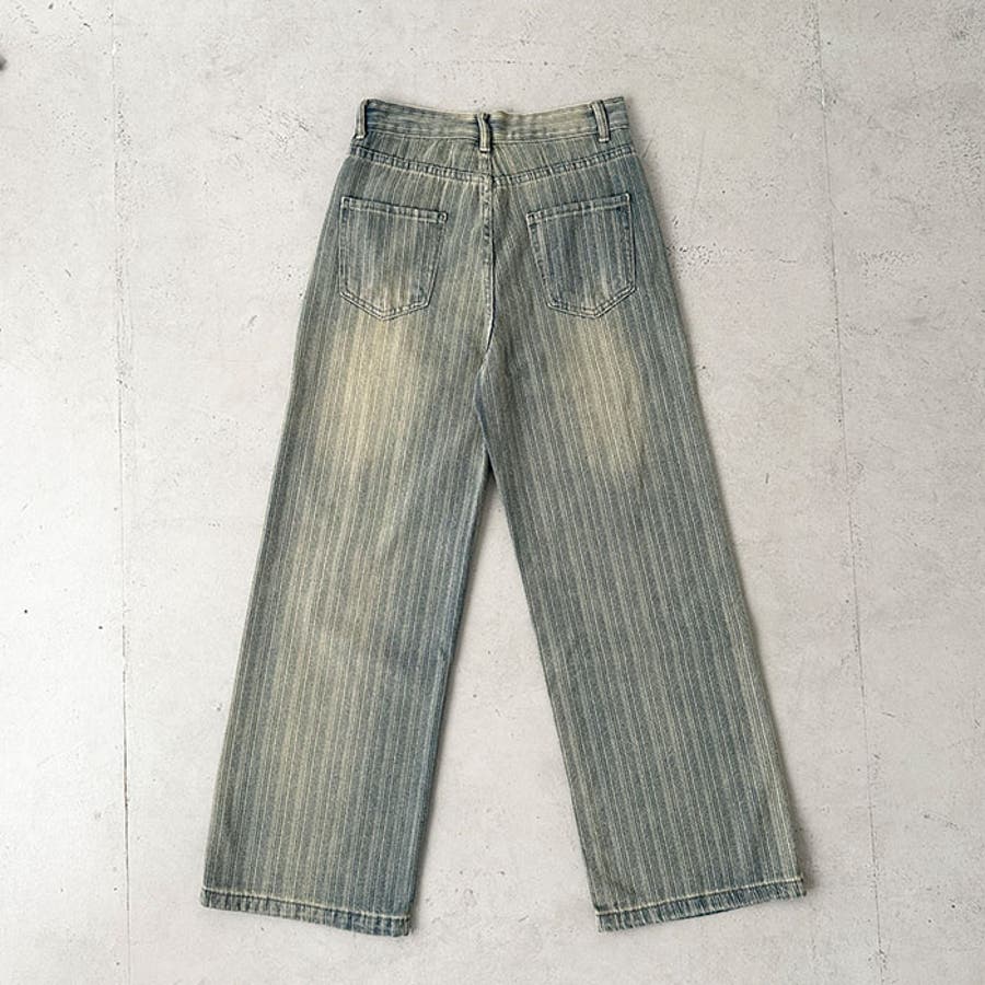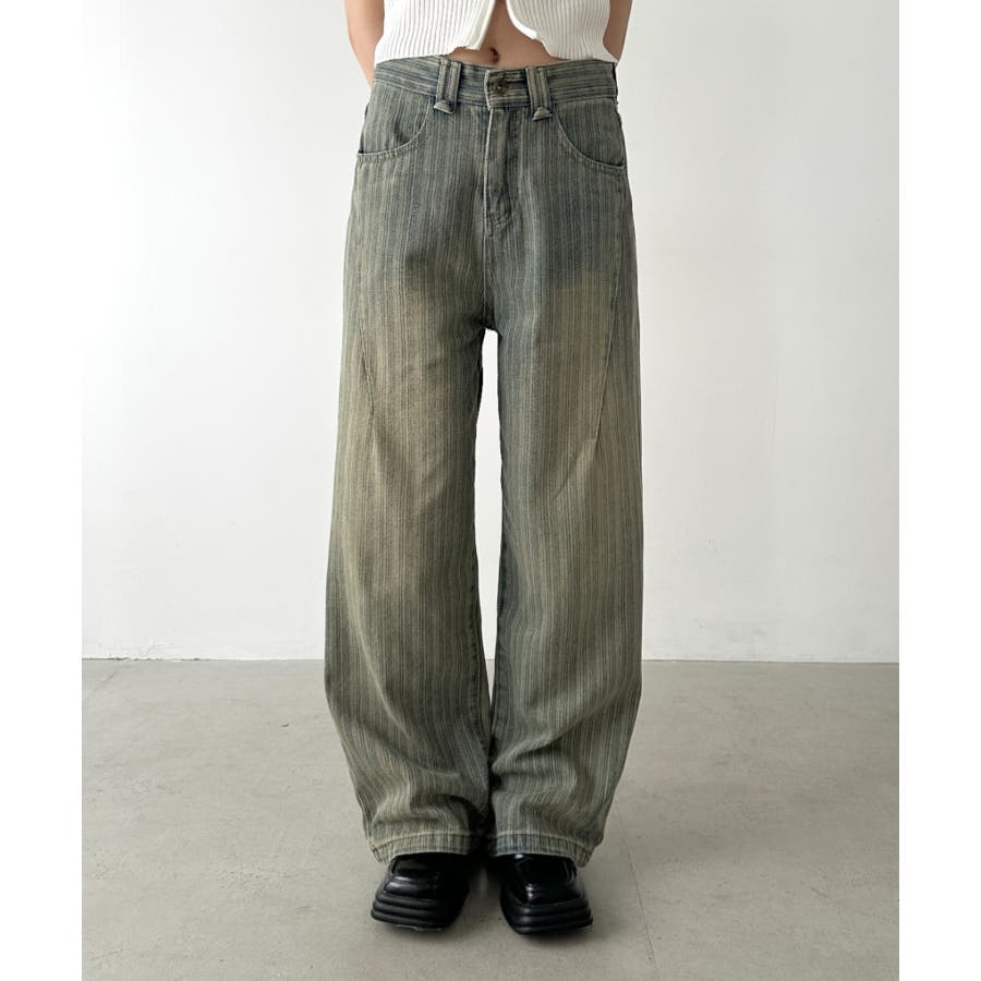 ストライプ柄ワイドデニムパンツ