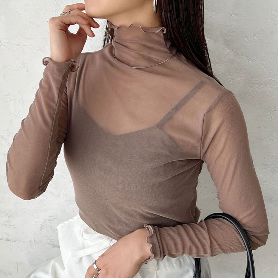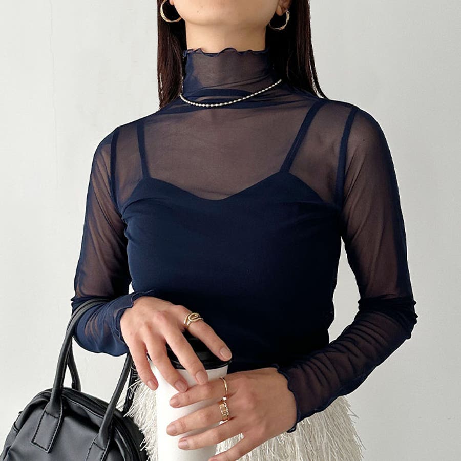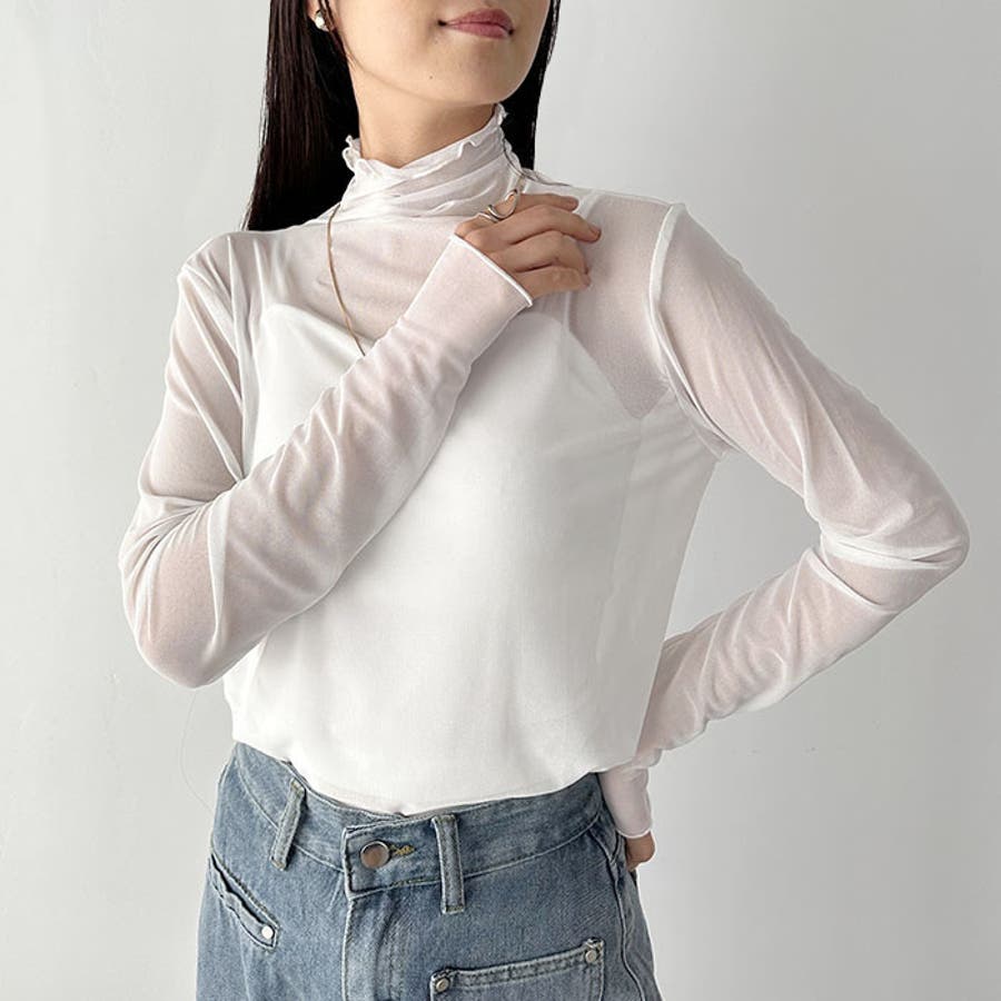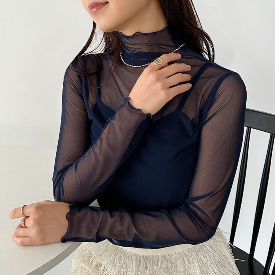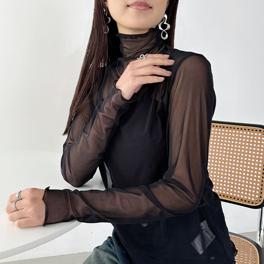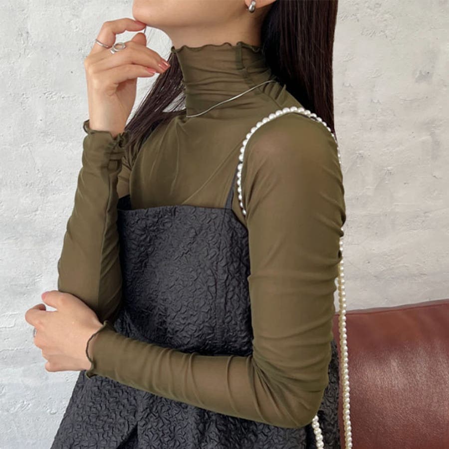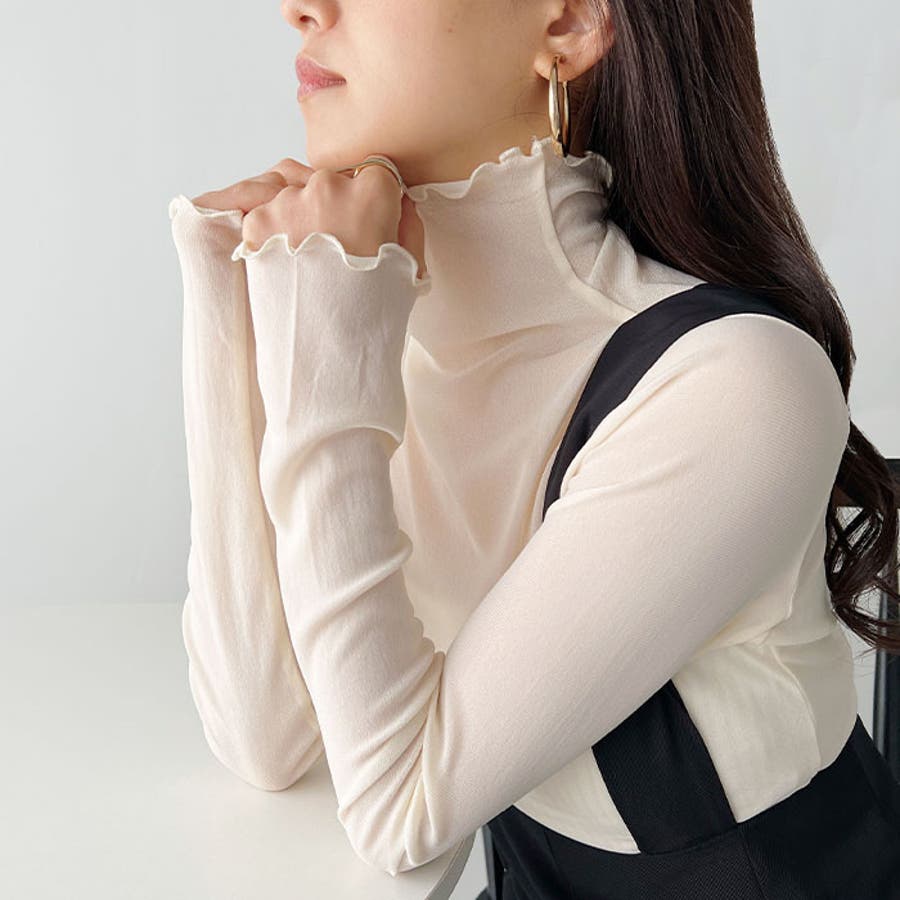 程よい透け感が上品で女性らしいハイネックシアーインナー。