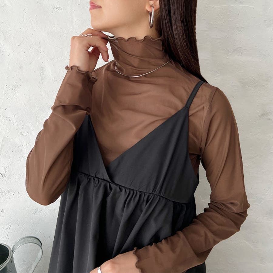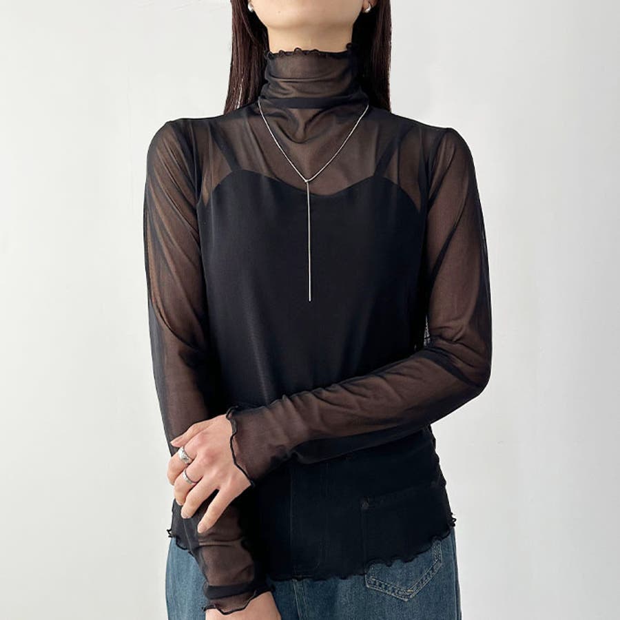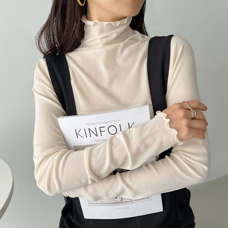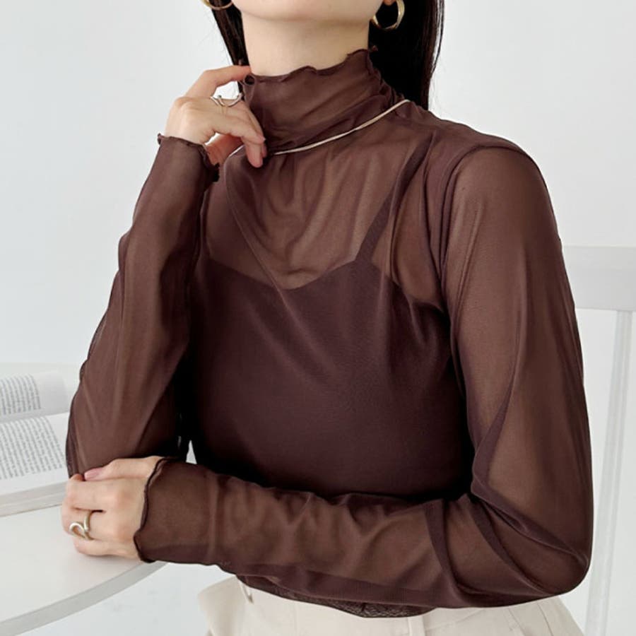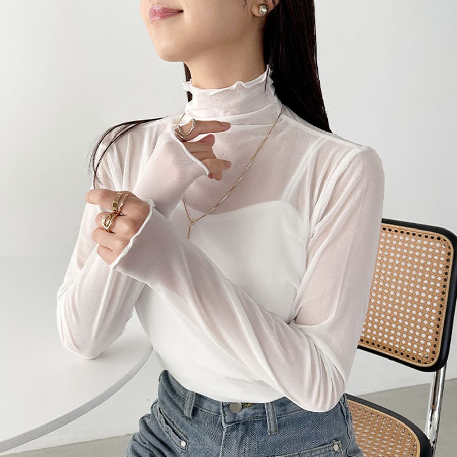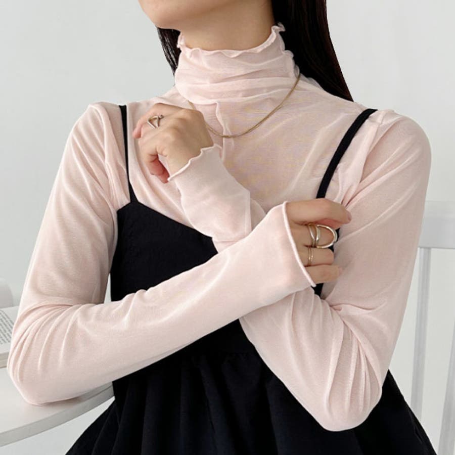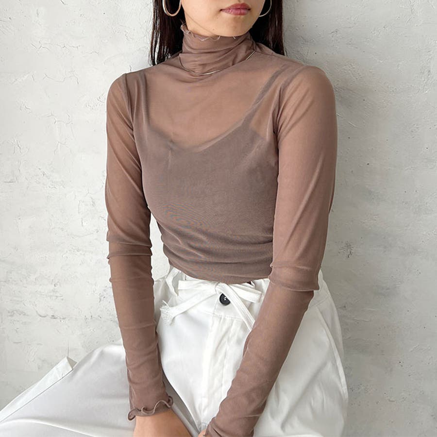 程よい透け感が上品で女性らしいハイネックシアーインナー。