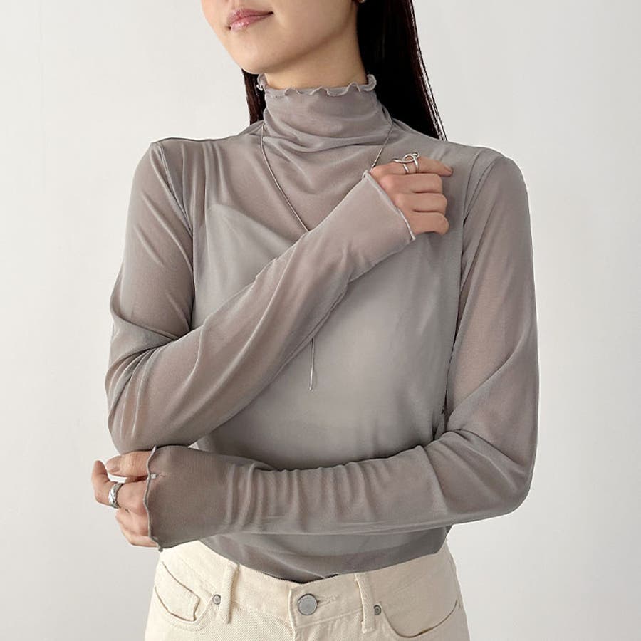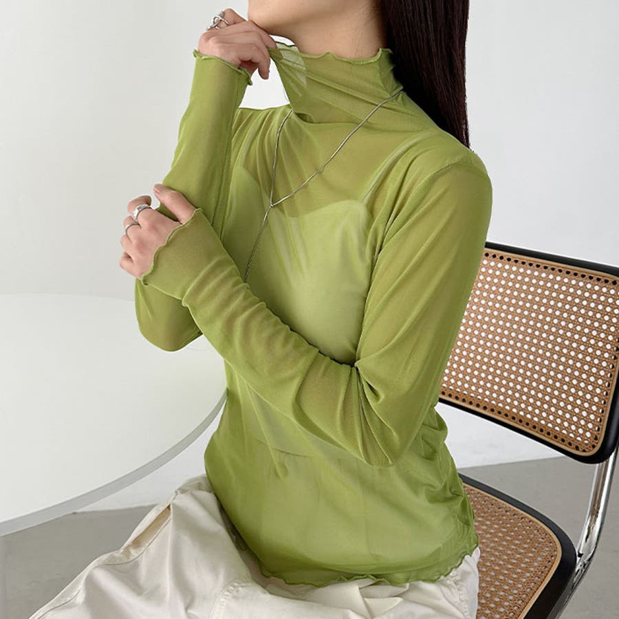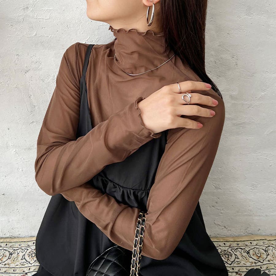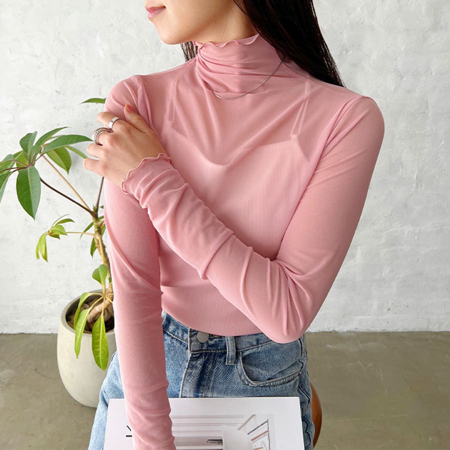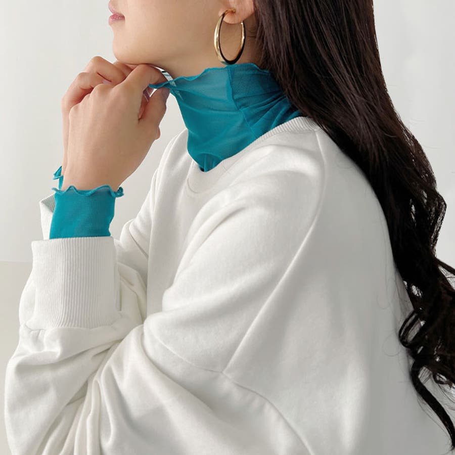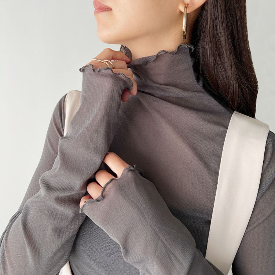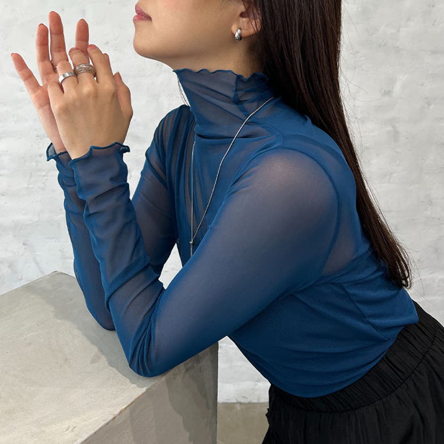 程よい透け感が上品で女性らしいハイネックシアーインナー。