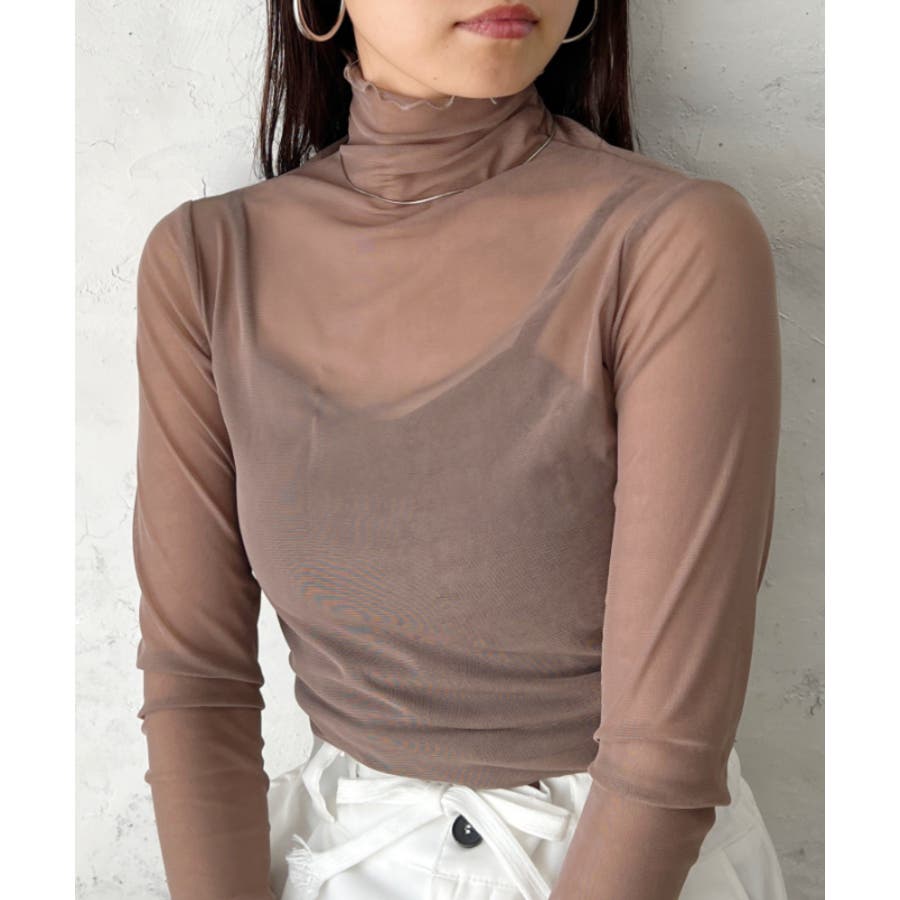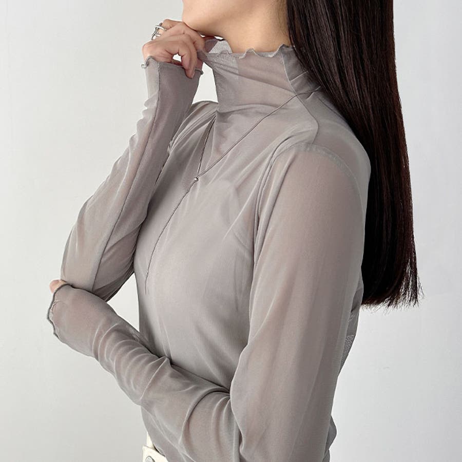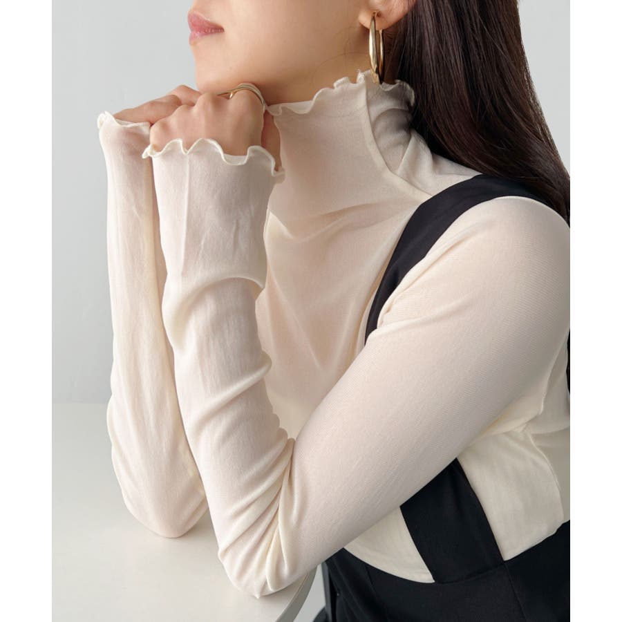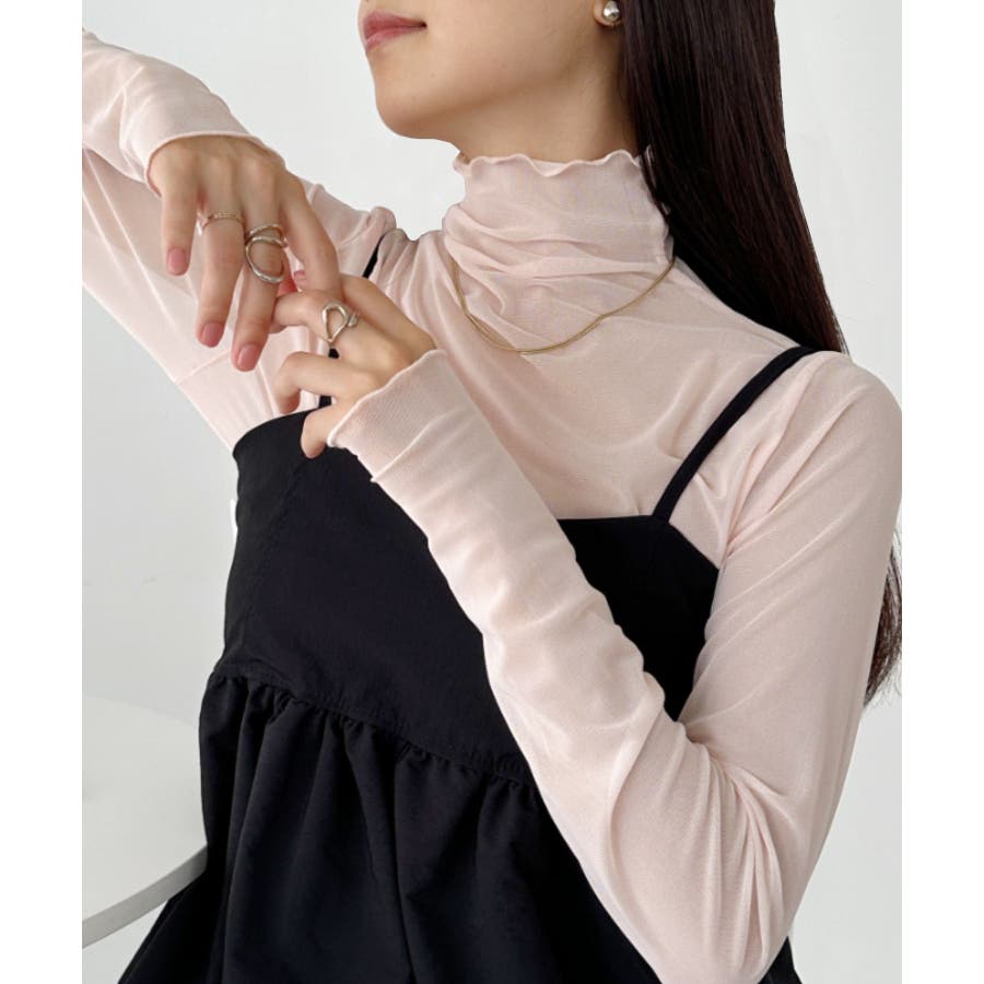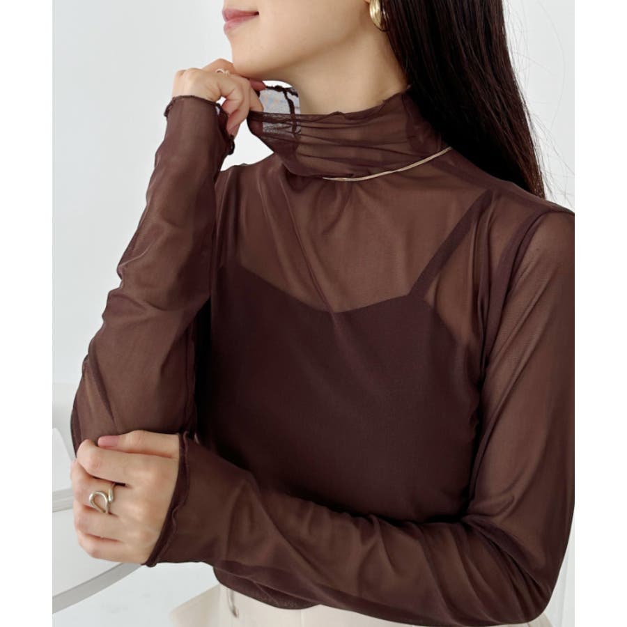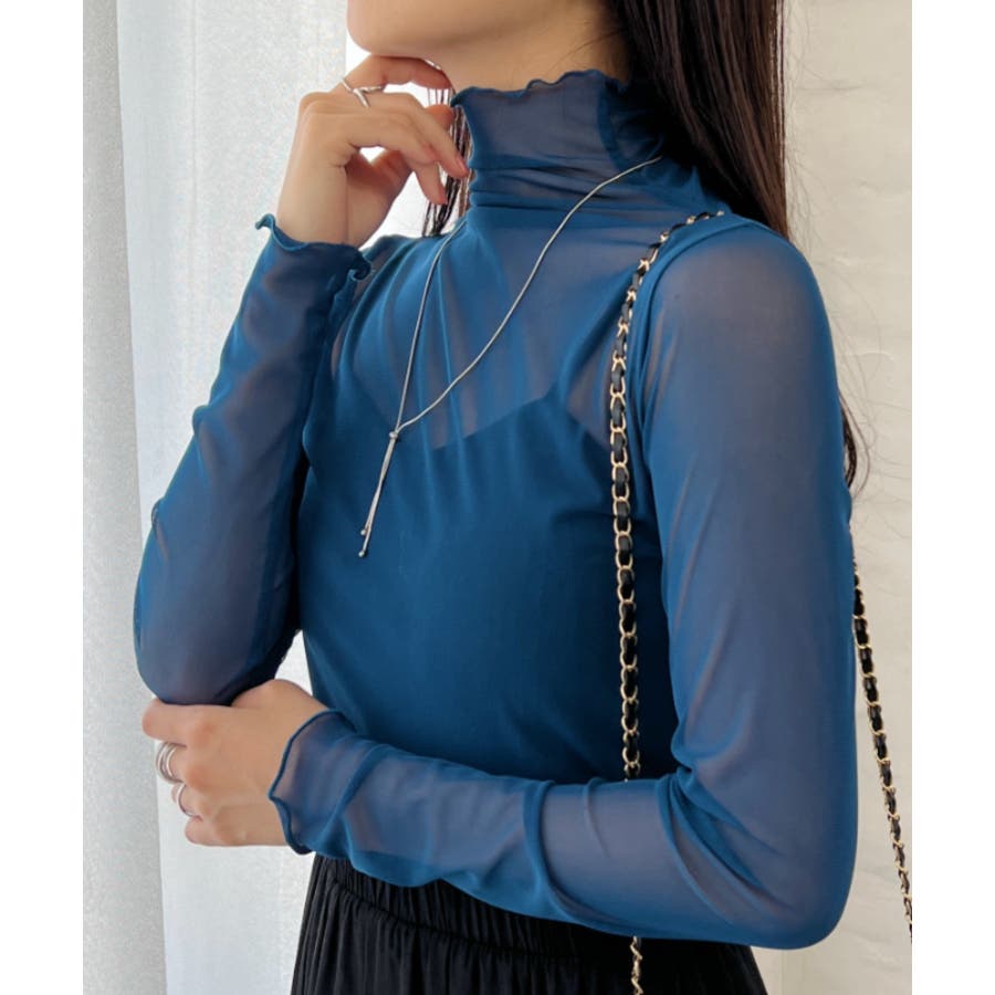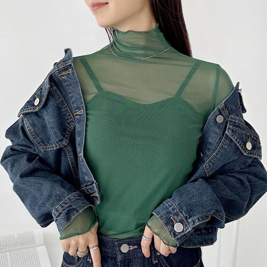 程よい透け感が上品で女性らしいハイネックシアーインナー。