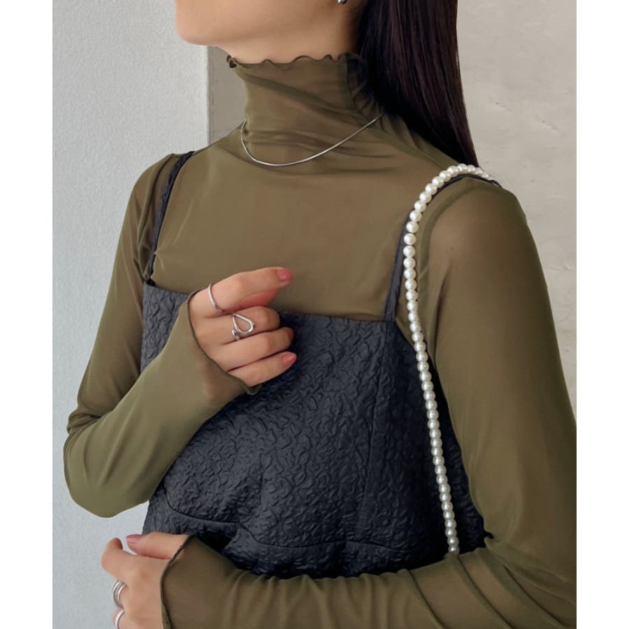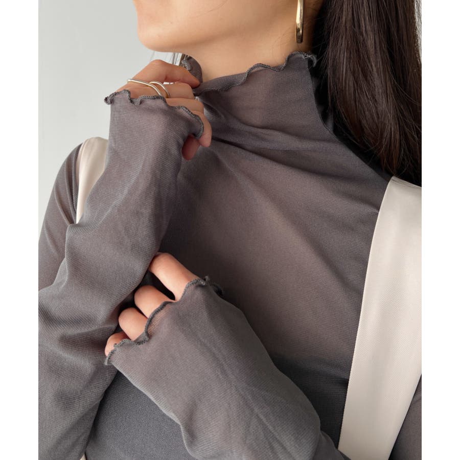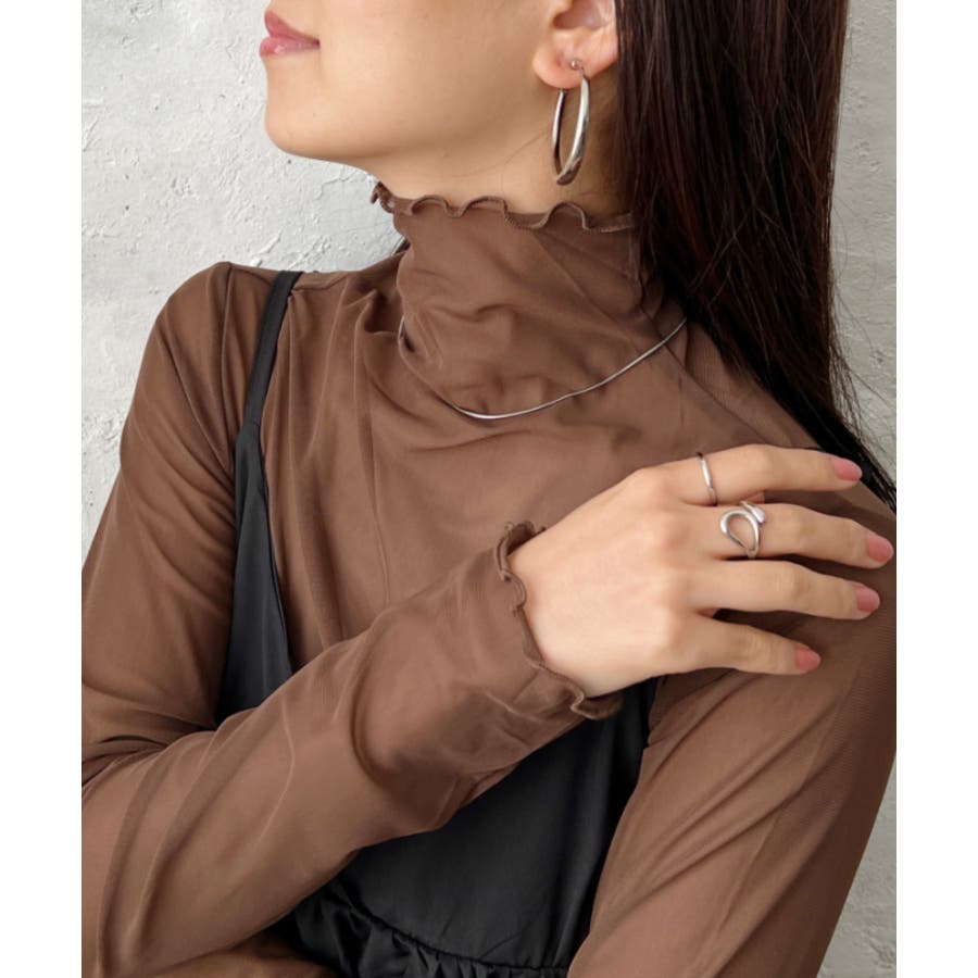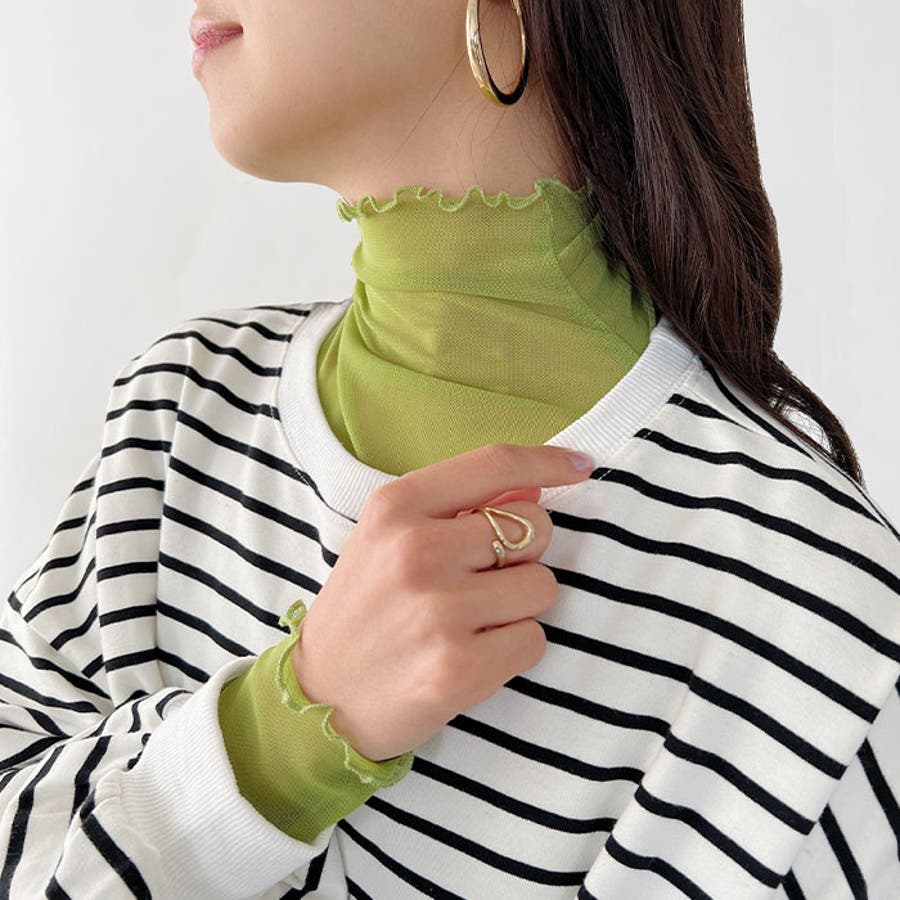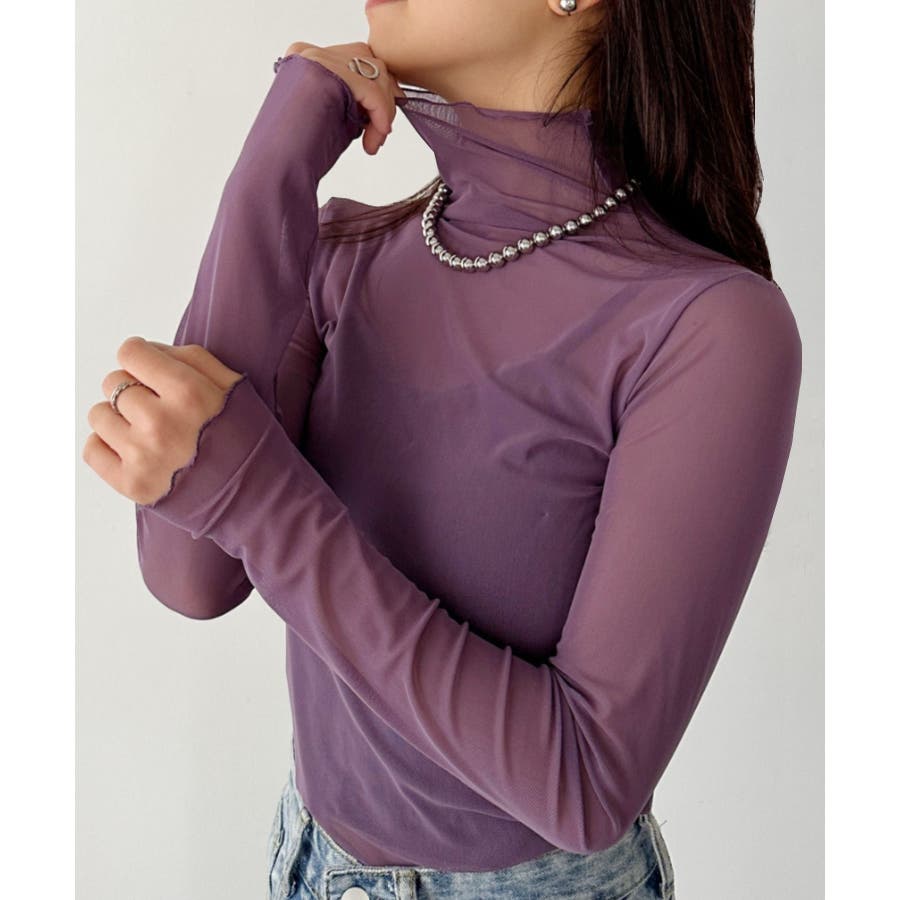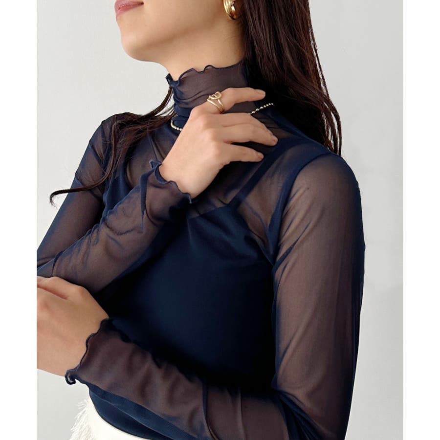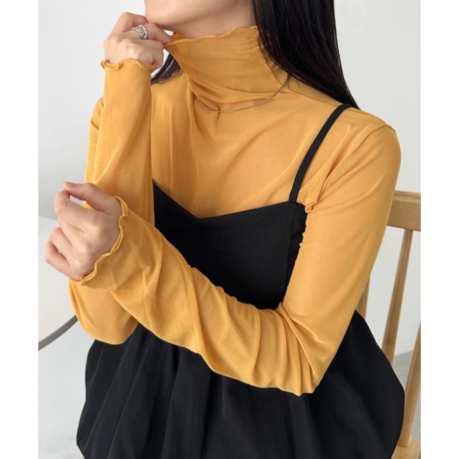 程よい透け感が上品で女性らしいハイネックシアーインナー。