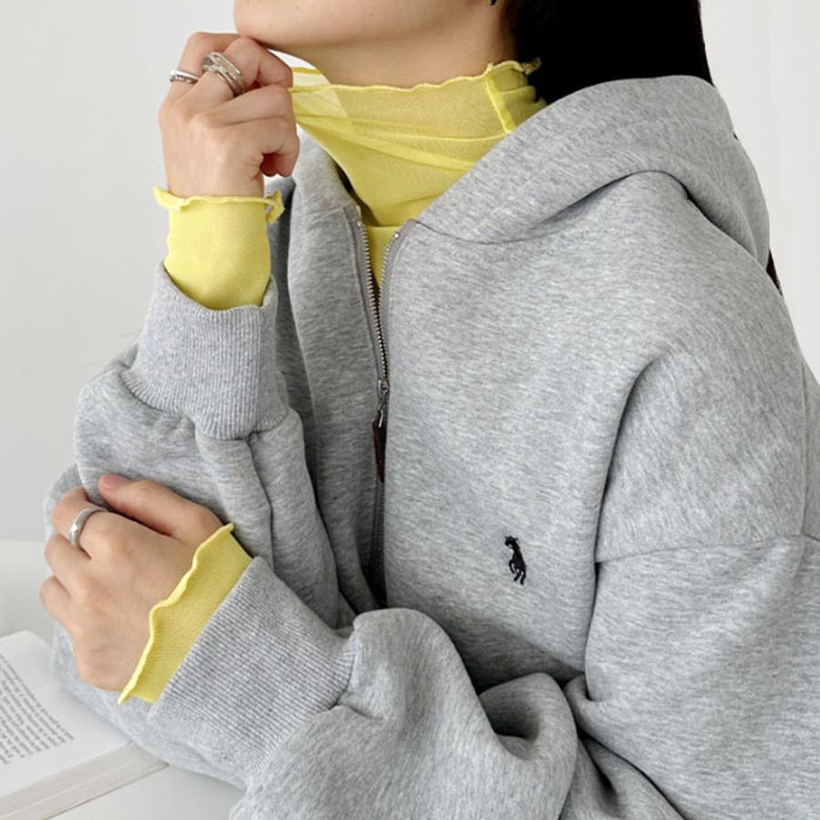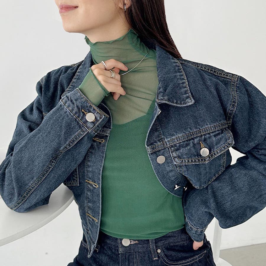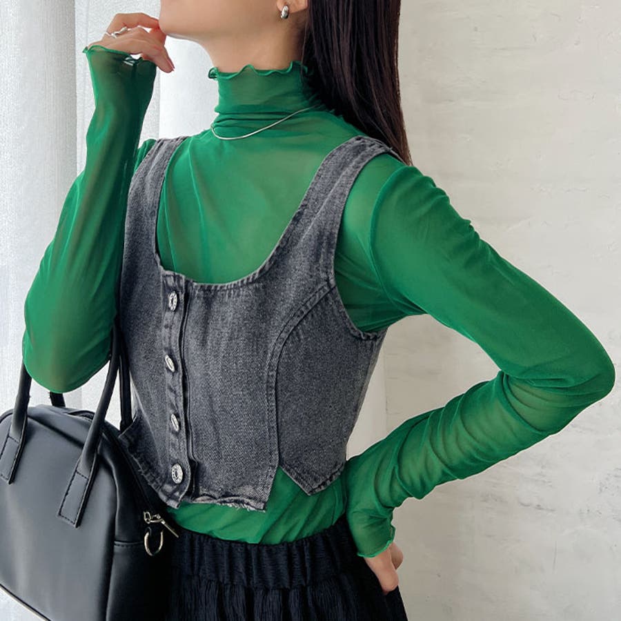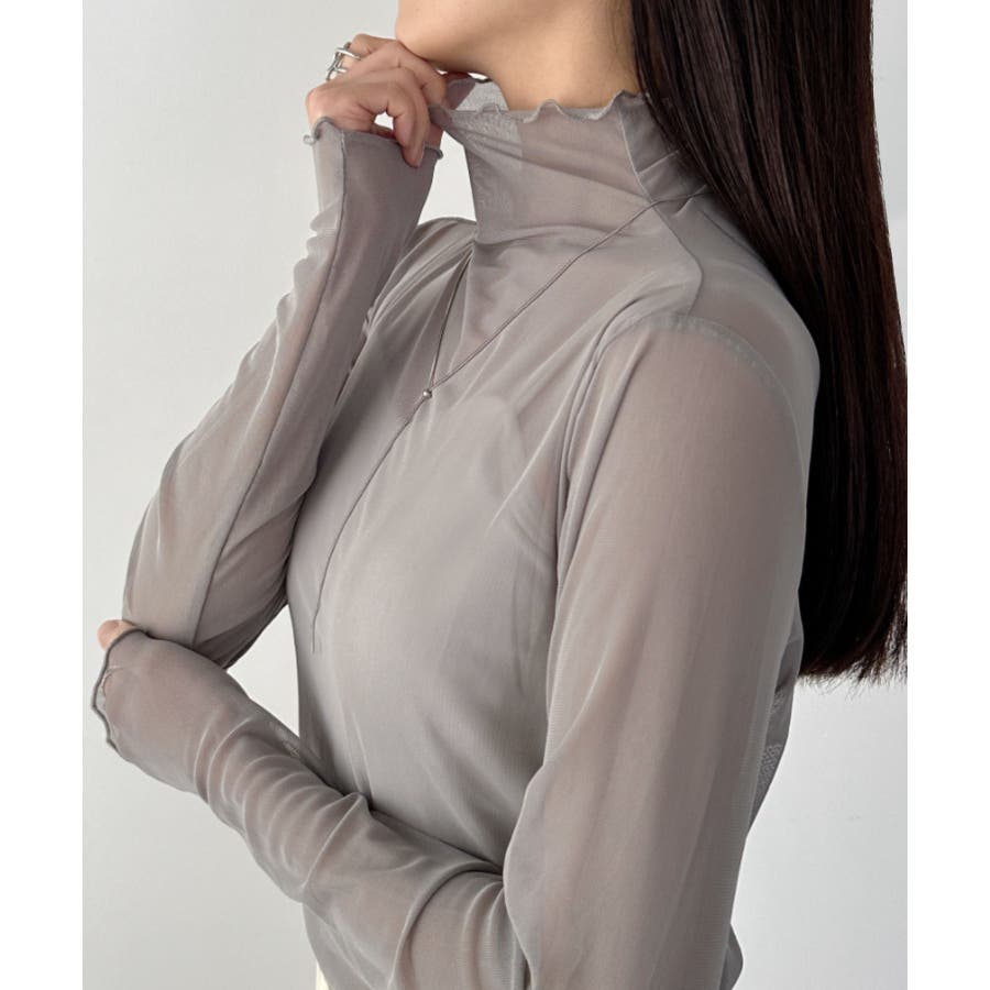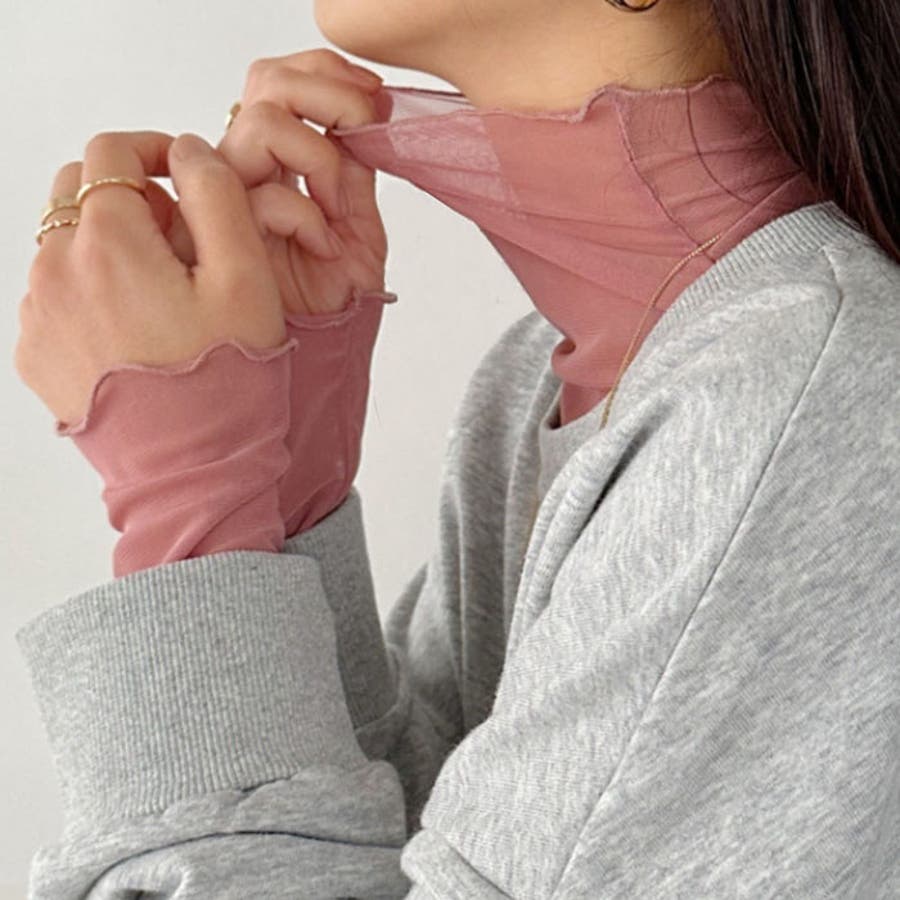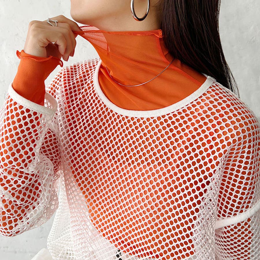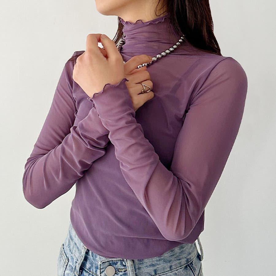 程よい透け感が上品で女性らしいハイネックシアーインナー。