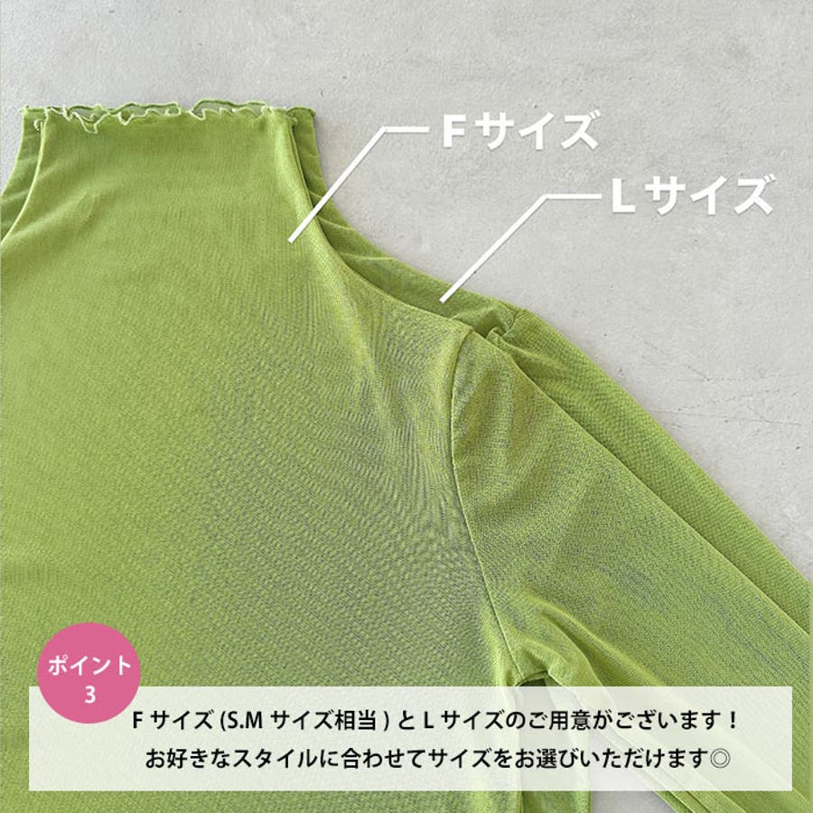 Lサイズは通常のFサイズ(フリーサイズ)に比べ、身巾、袖巾が大きいので春秋に1枚で着るときにピタッとなりすぎない着用感◎