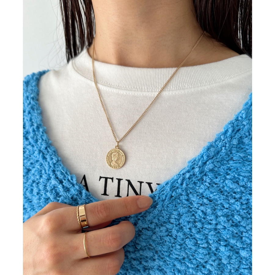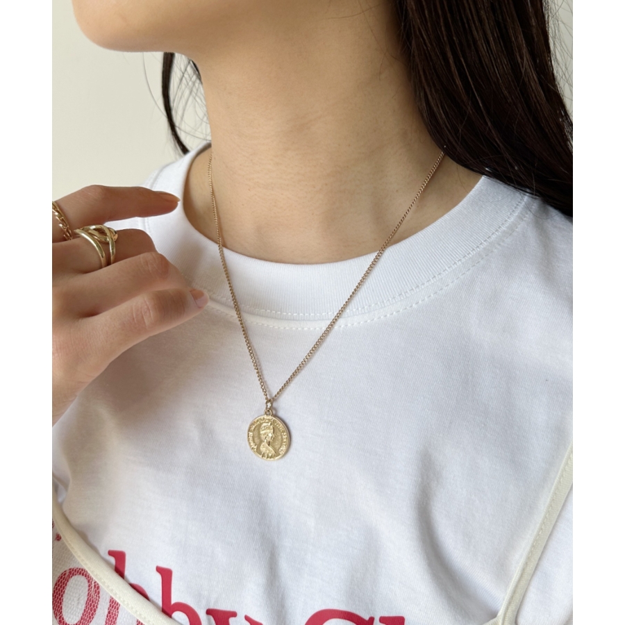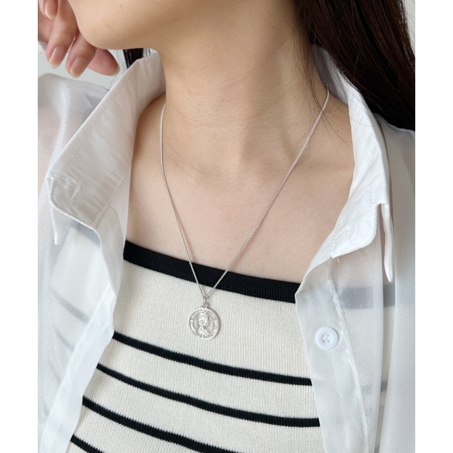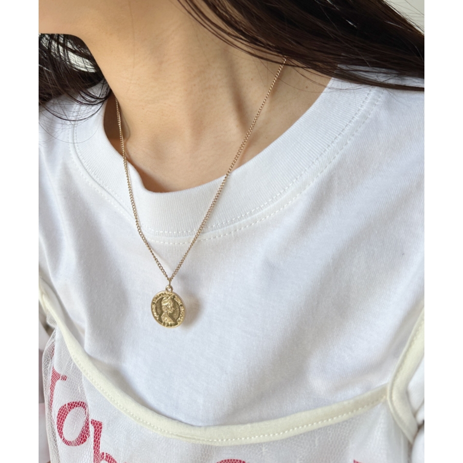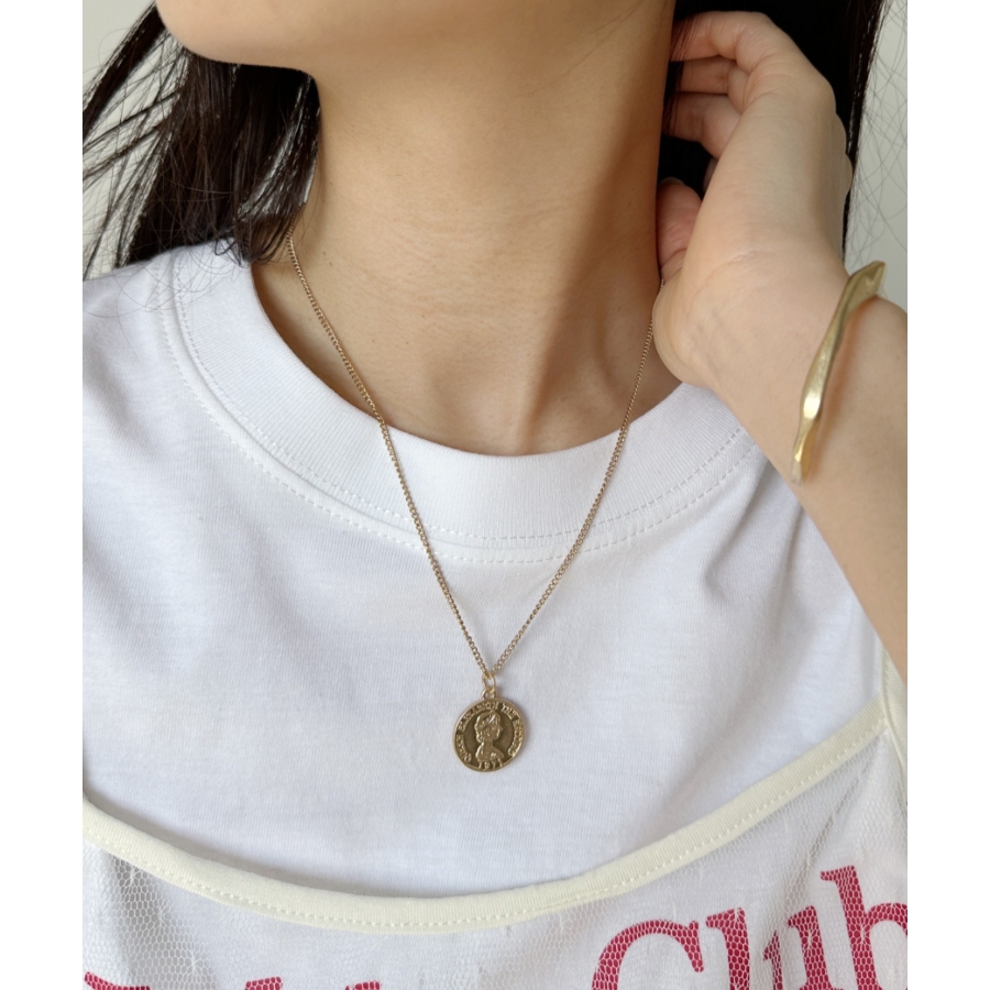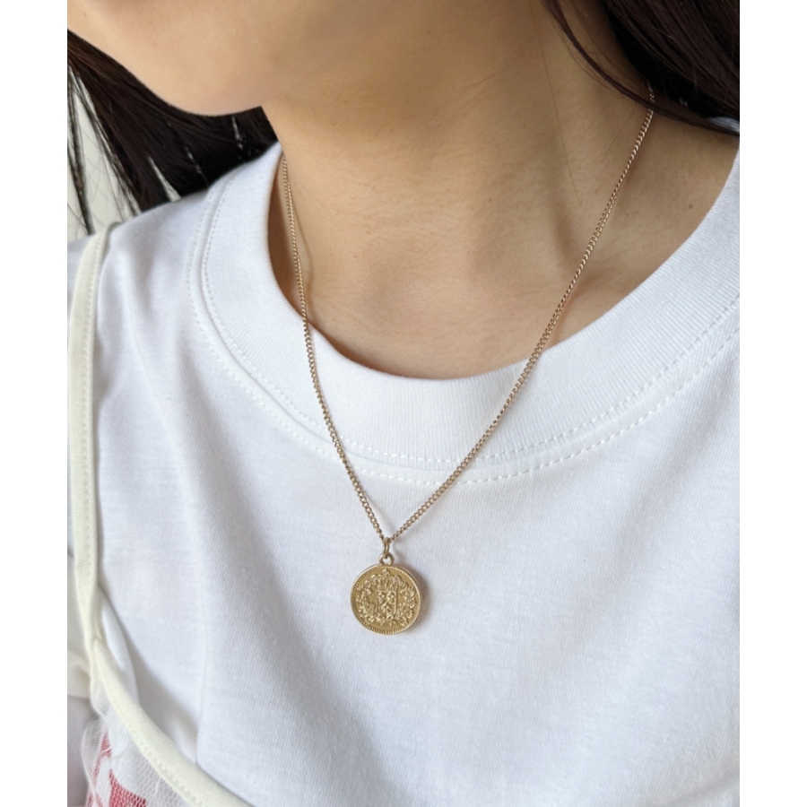 コインのモチーフが特徴的なネックレス。華奢なラインが上品な首元コーデを演出します。