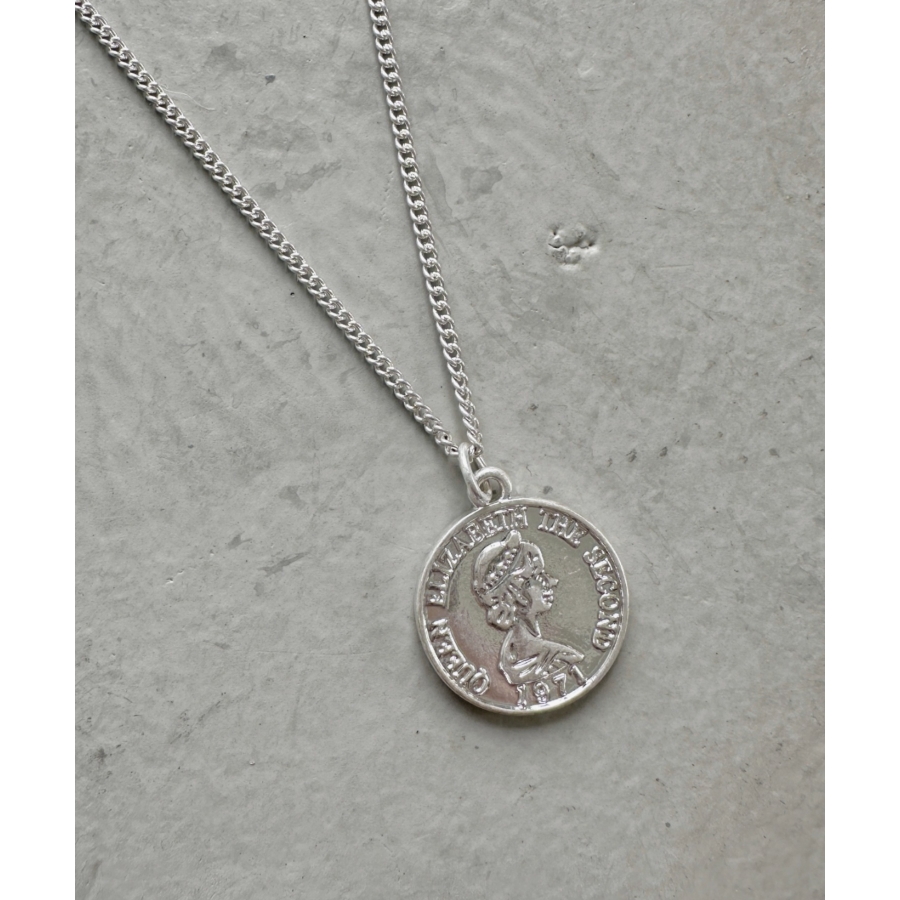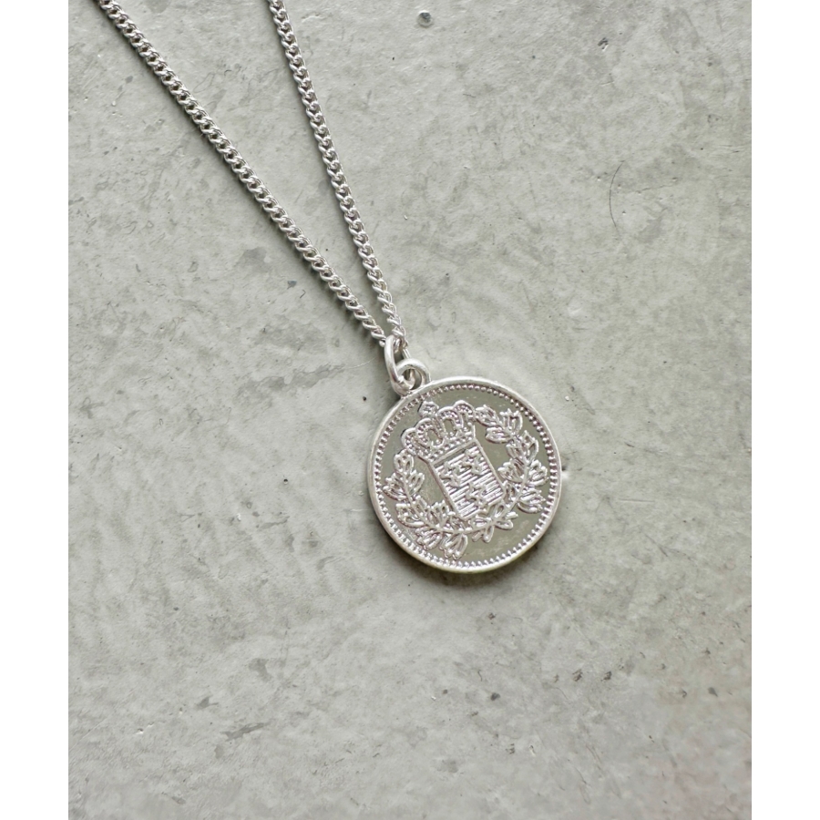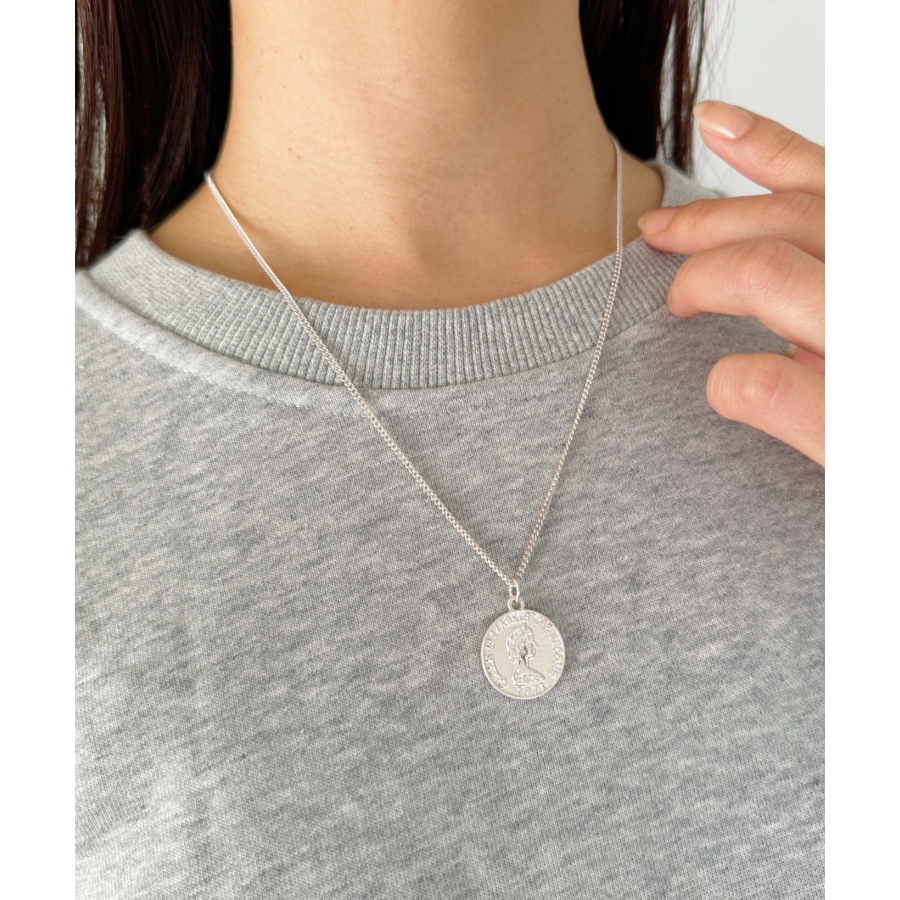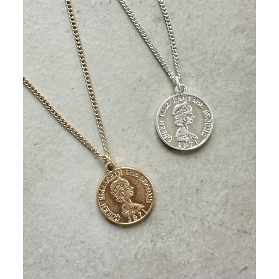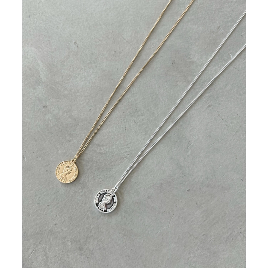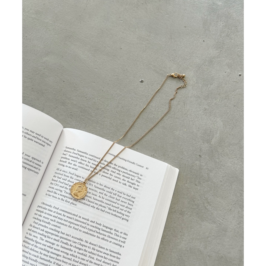 コインのモチーフが特徴的なネックレス。華奢なラインが上品な首元コーデを演出します。