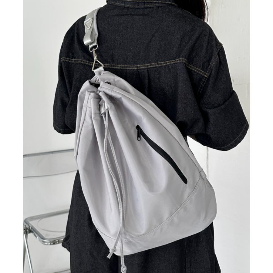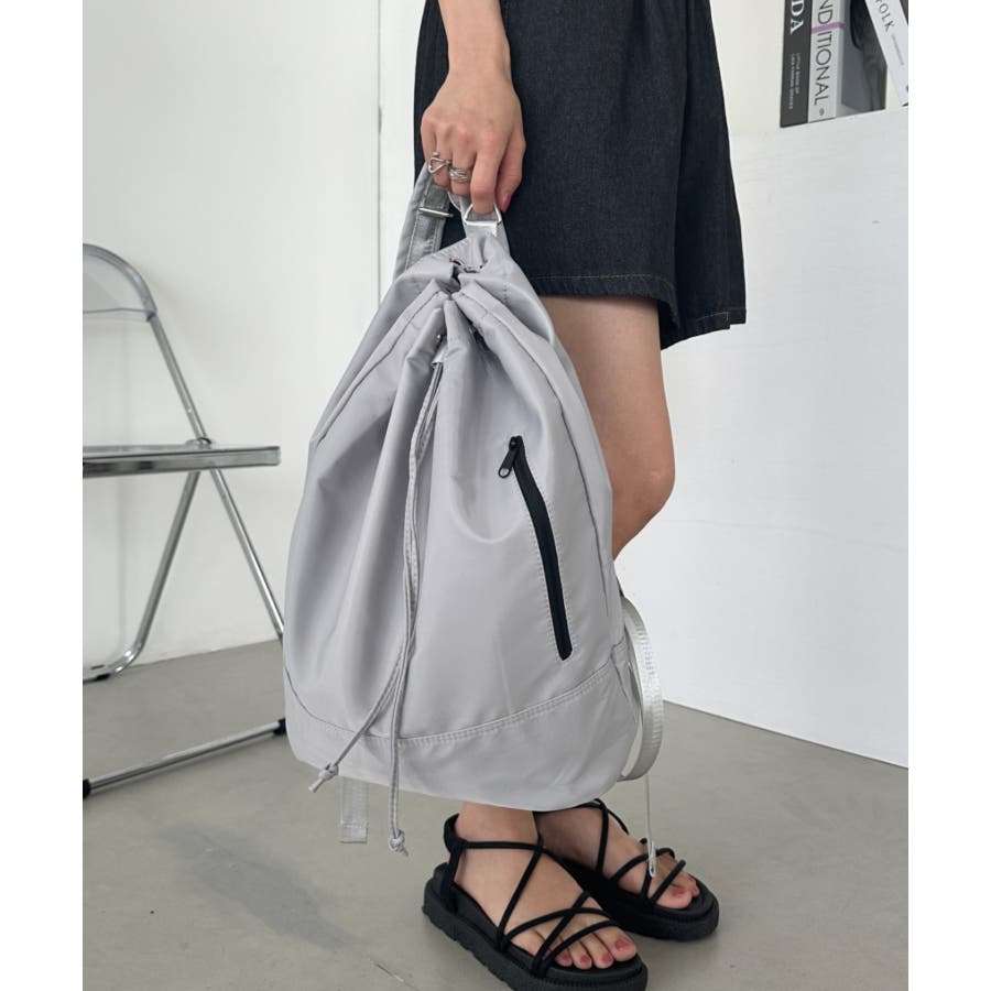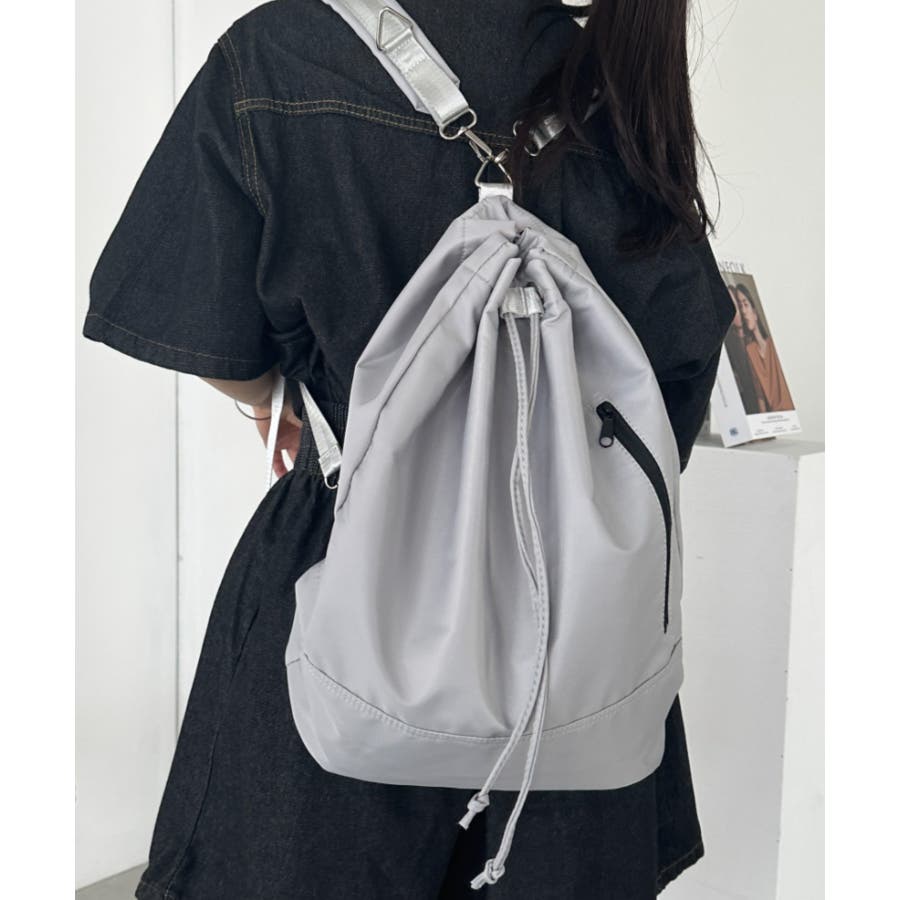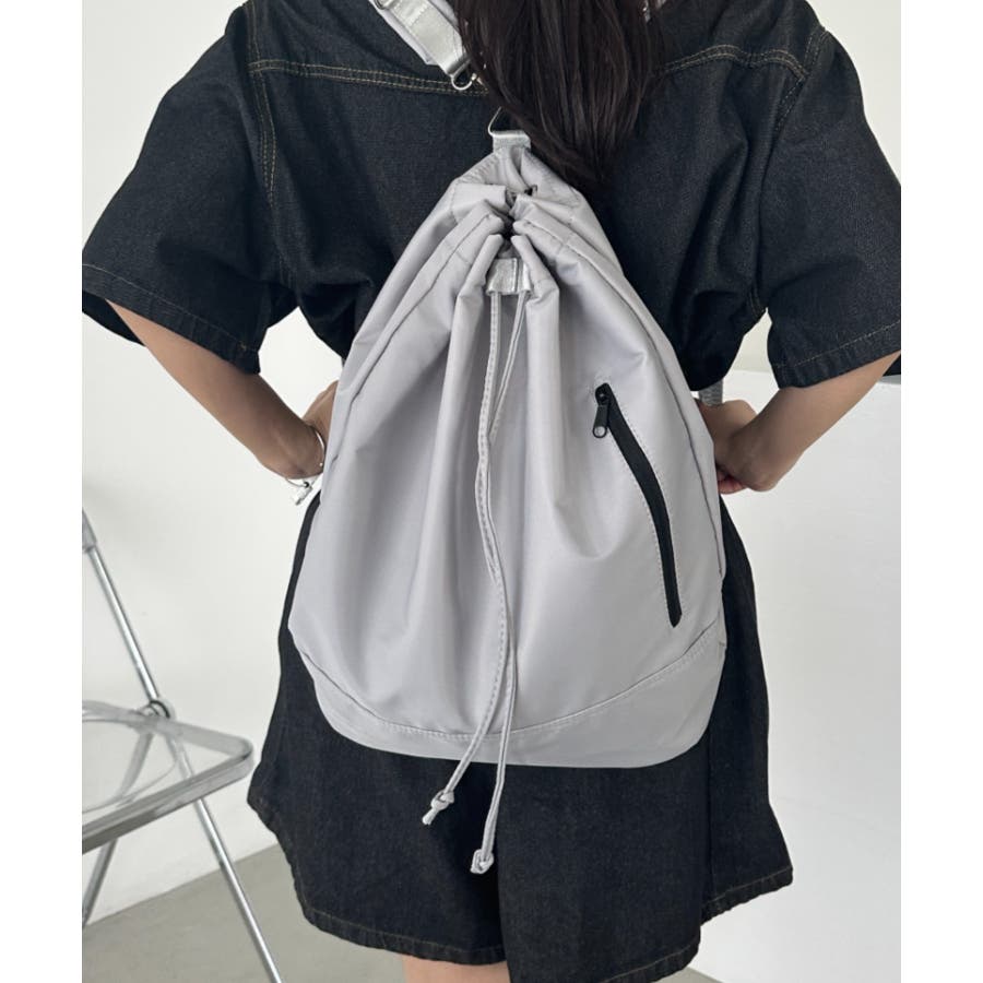 色も容量も良かったし、内ポケットもチャック付きであるのも良かったですが、巾着のように紐を引っ張るだけで口が閉じるタイプなので重いもの入れると鞄全開になるのがちょっと残念でした。