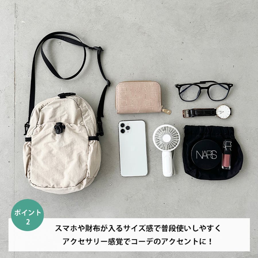 スマホや財布が入るサイズ感はアクセサリー感覚でコーデのアクセントに!